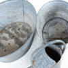 Bañera grande con 4 orificios más pequeños en la parte inferior, otros desgastes y marcas.