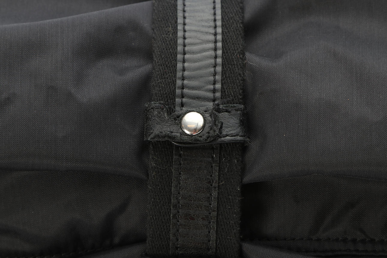Sintético con detalles de piel y metal cromado. Etiquetado como «Belstaff, un producto genuino, el original desde 1924».