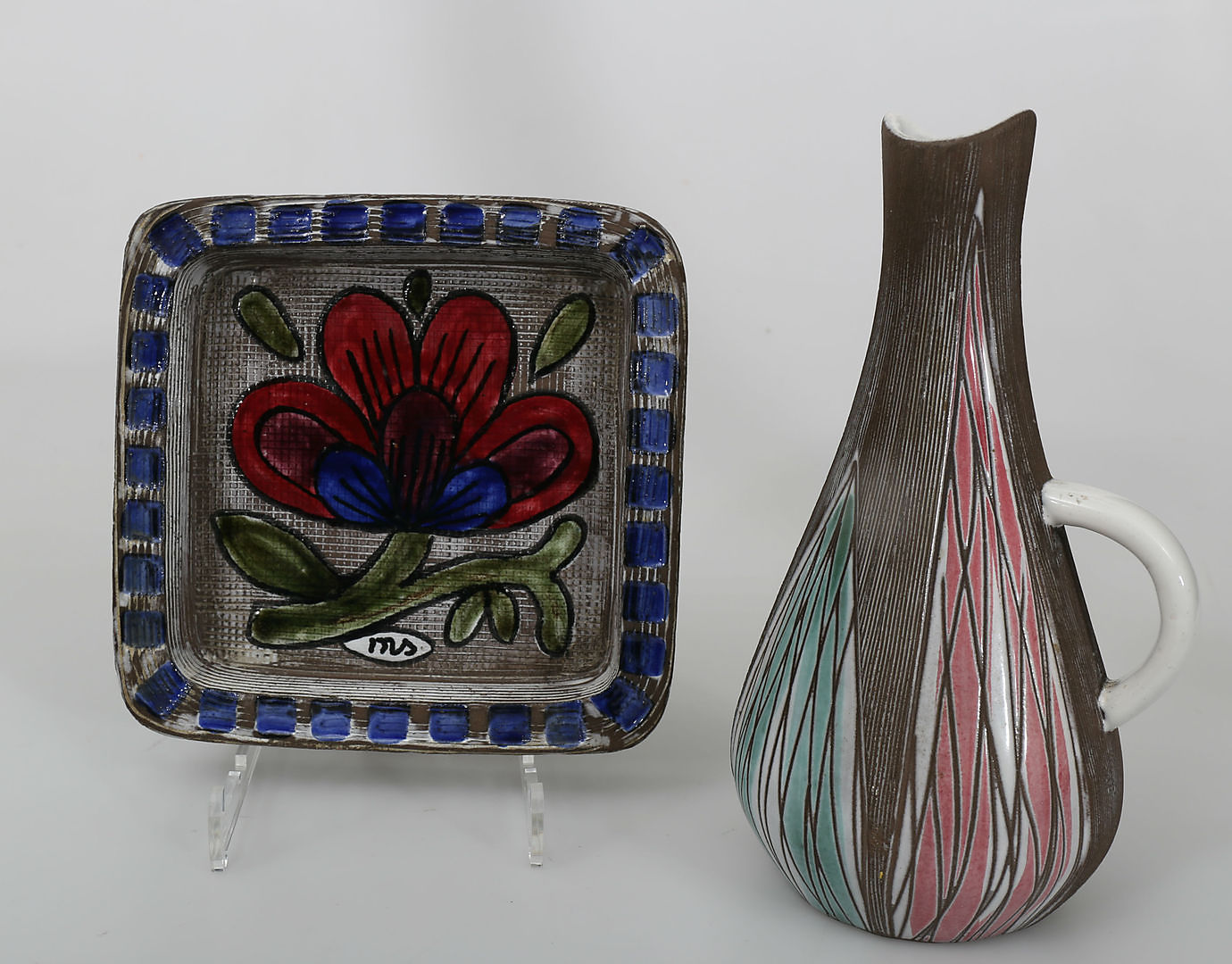 362263. MARI SIMMULSON. Florero y cenicero, gres, Upsala Ekeby, firmado M S.