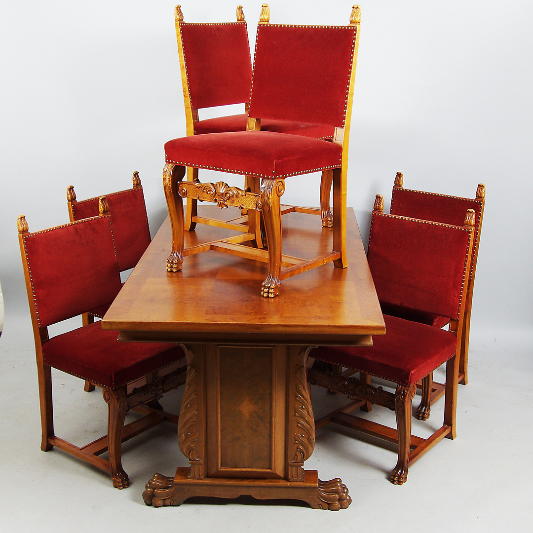 363545. COMEDOR GRUPO, roble, estilo Chippendale.