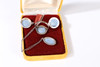 Para incluir un par de pendientes y un anillo a juego. Con un colgante. Pendientes y anillo que representan a una señora bailando, montados en metal blanco sin marcar. El cameo del colgante representa a una dama clásica con un ancla, montado en metal blanco sin marcas. Longitud de cadena: 18 pulgadas. Peso bruto 9 g.