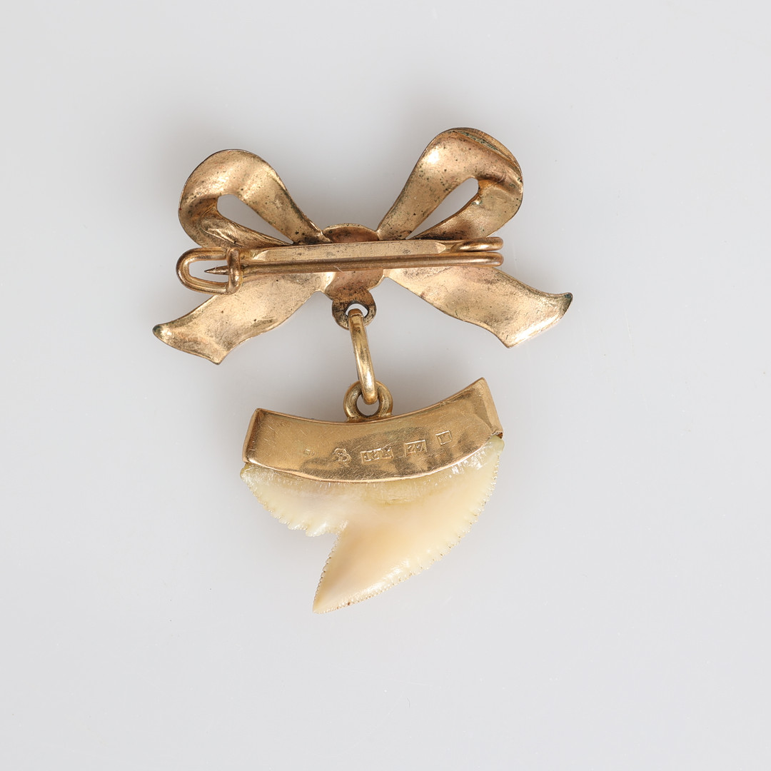 3636819. BROCHE, oro de 18 quilates, diente de tiburón.
