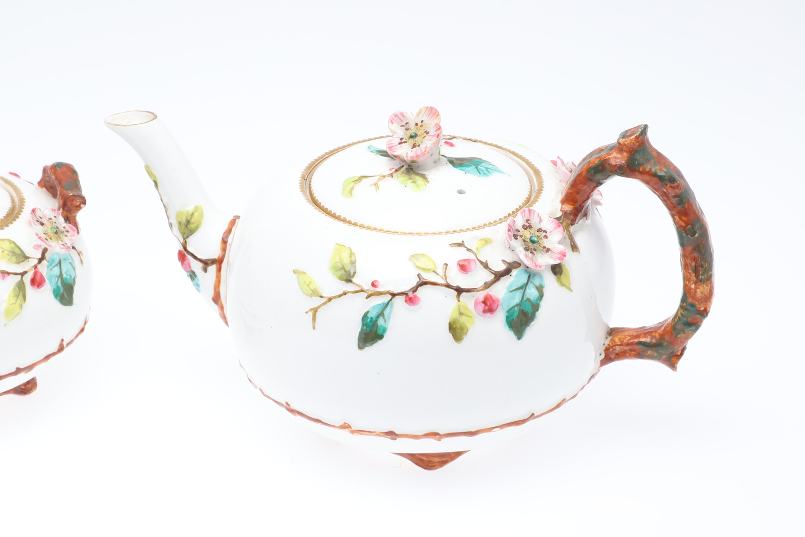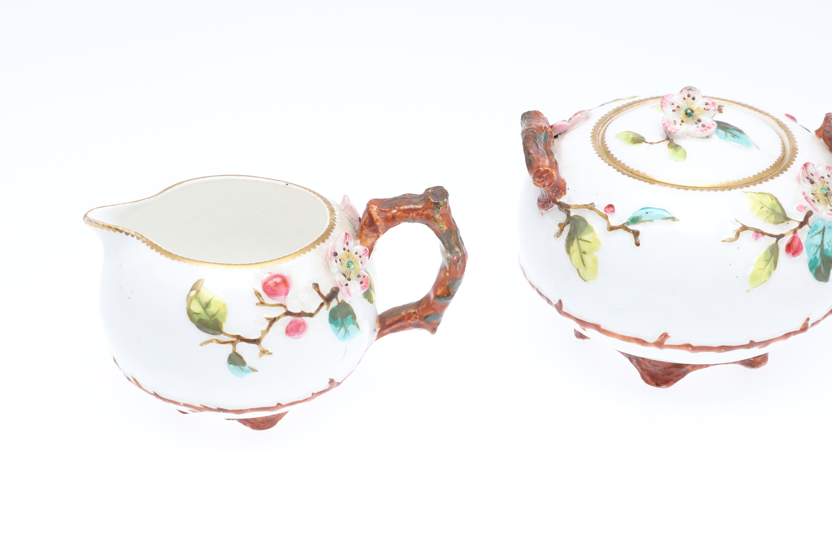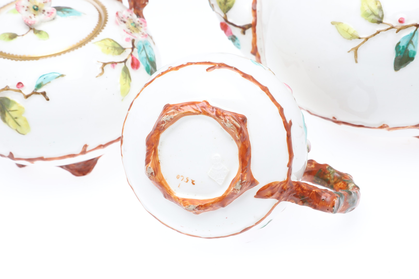 3649943. UN JUEGO DE TÉ VICTORIANO DE PORCELANA BODLEY DE TRES PIEZAS.