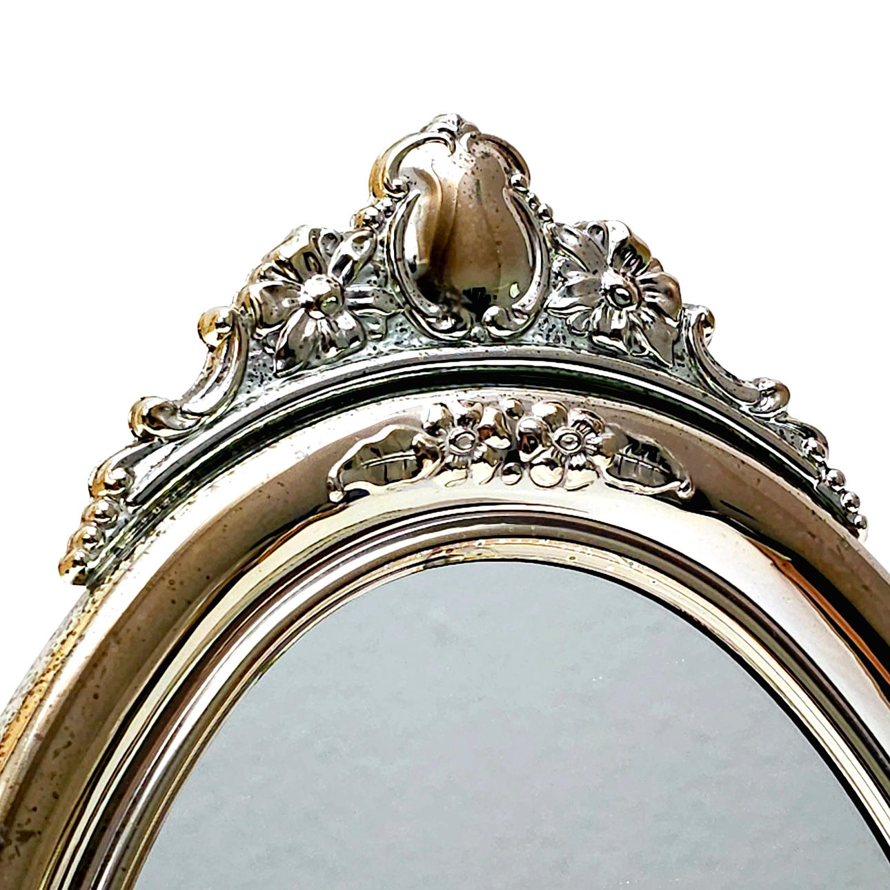 ESPEJO DE SOBREMESA EN PLATA LABRADA.
