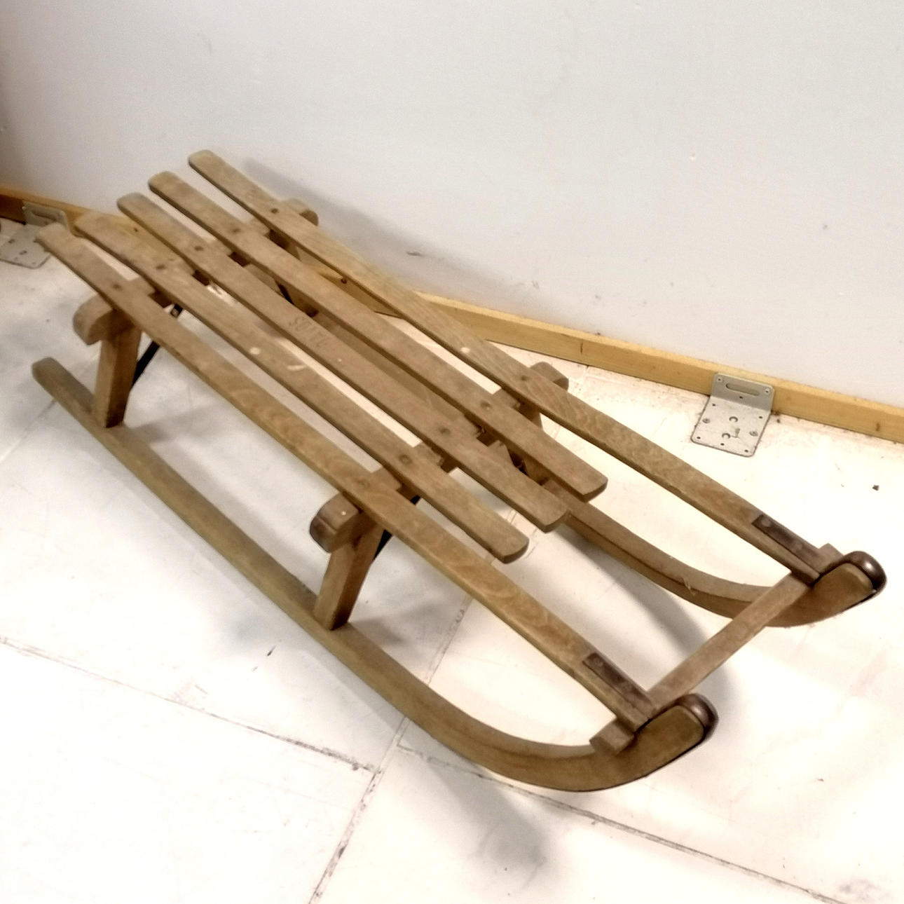 Trineo Davos de madera antiguo, 100 cm de largo.