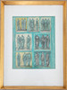 Litografía en color «Estudios de tres figuras de pie». 1946. ca. 24 x 29 cm enmarcado detrás de paspartú y cristal, con marco ca. 37 x 48 cm.