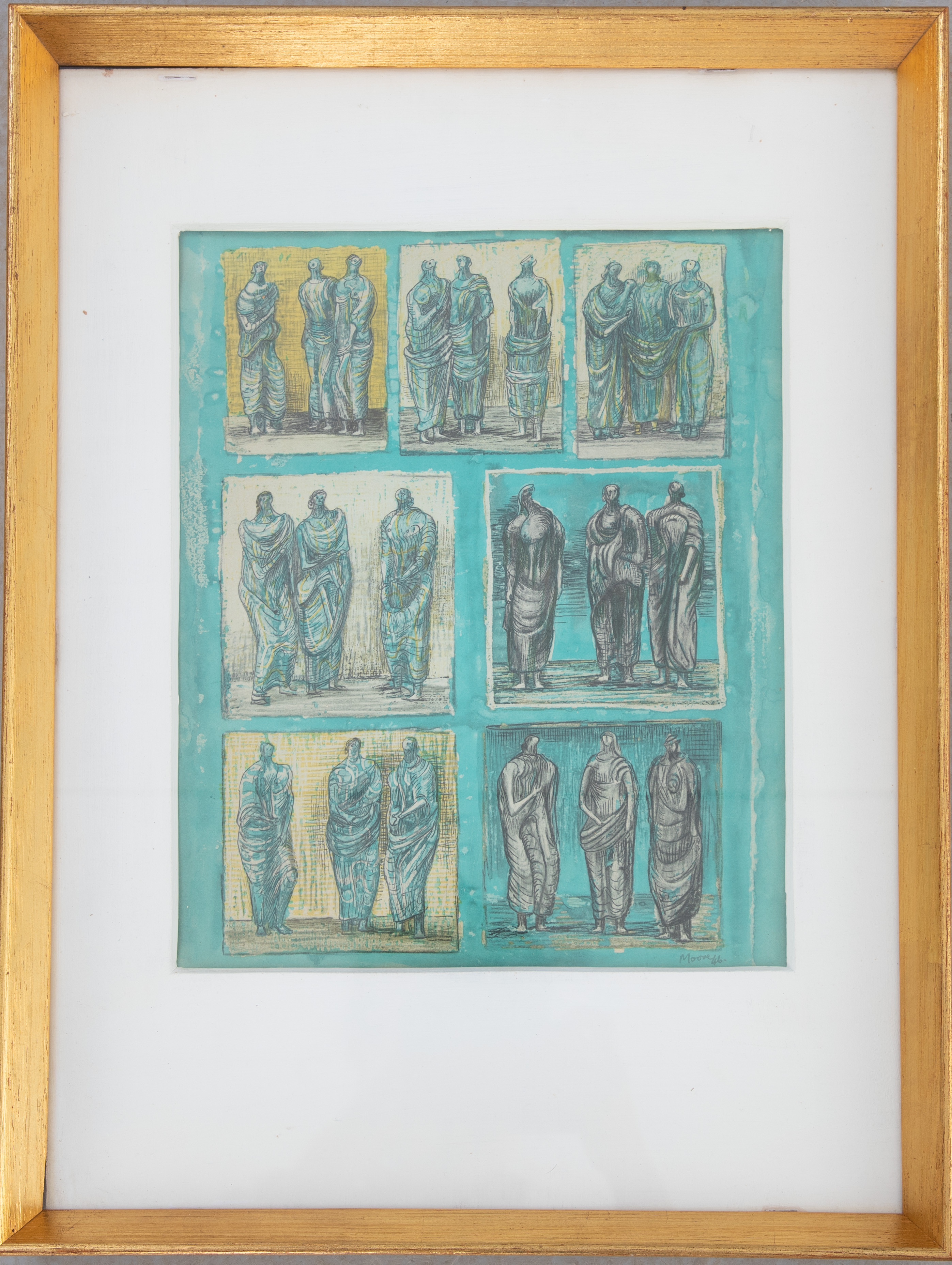 3672268. HENRY MOORE (1898-1986). Estudios de tres figuras de pie.