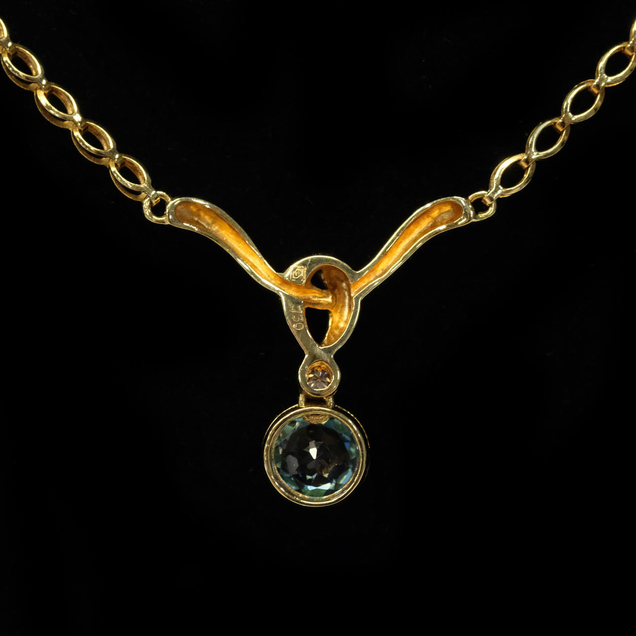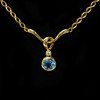 Topacio azul facetado redondo, de aproximadamente 5 mm de diámetro y diamante de talla brillante de aproximadamente 0,03 quilates, en oro de 18 quilates, 41 cm de longitud, 6,9 gramos de peso, caja.