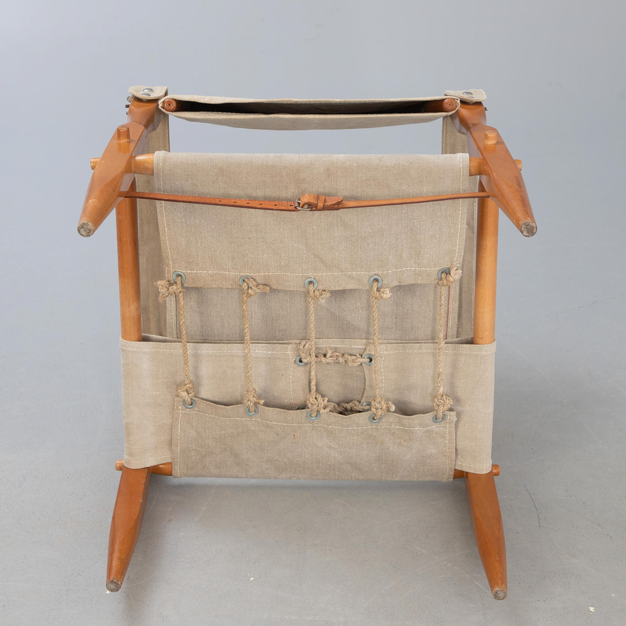 Diseño: 1928. Estructura de madera con reposabrazos, asiento, respaldo inclinable y reposabrazos de lona. Reposabrazos con pulsadores.
