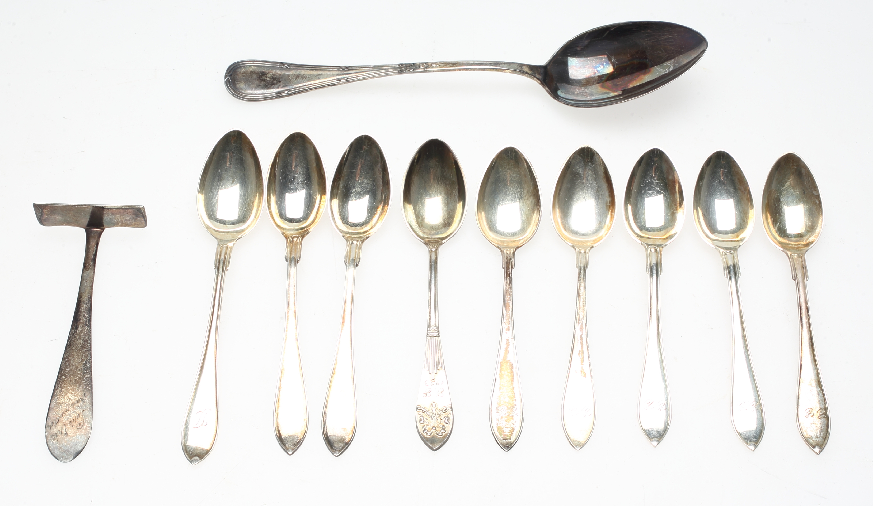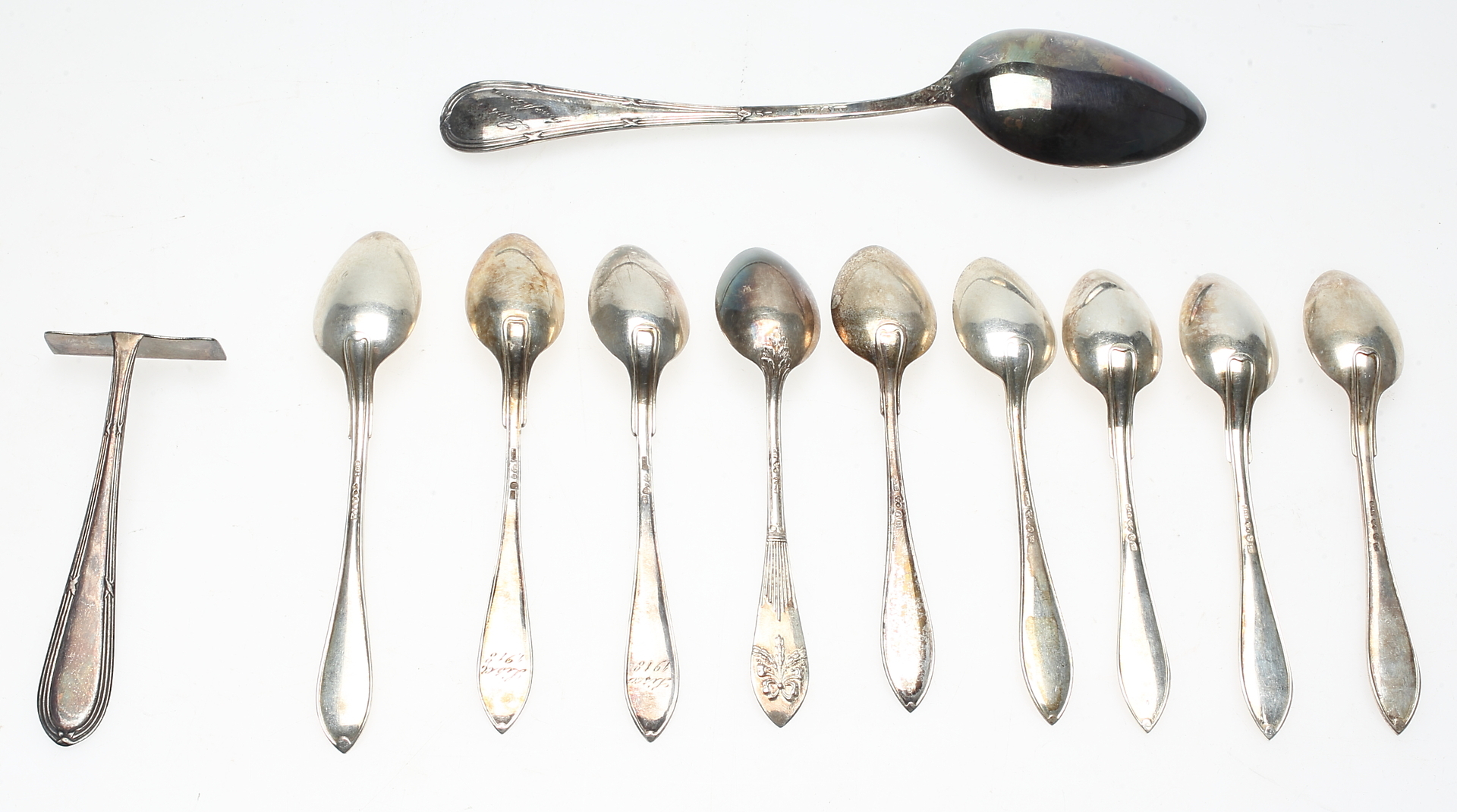 370100. CUCHARAS DE PLATA , 11 piezas, 1900.
