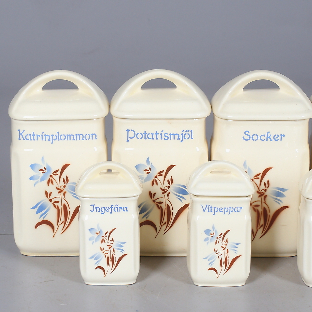 370574. BOTES DE ESPECIAS, 11 piezas, flintware, 1900.
