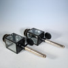 Un par de azulejos de pared, objeto decorativo, de metal y vidrio.