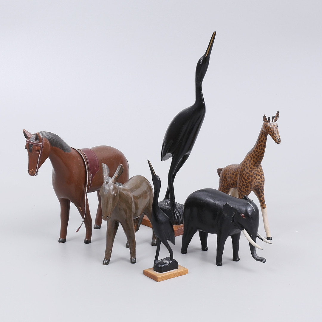 3725353. ESCULTURAS DE MADERA, 6 animales, siglo XX.
