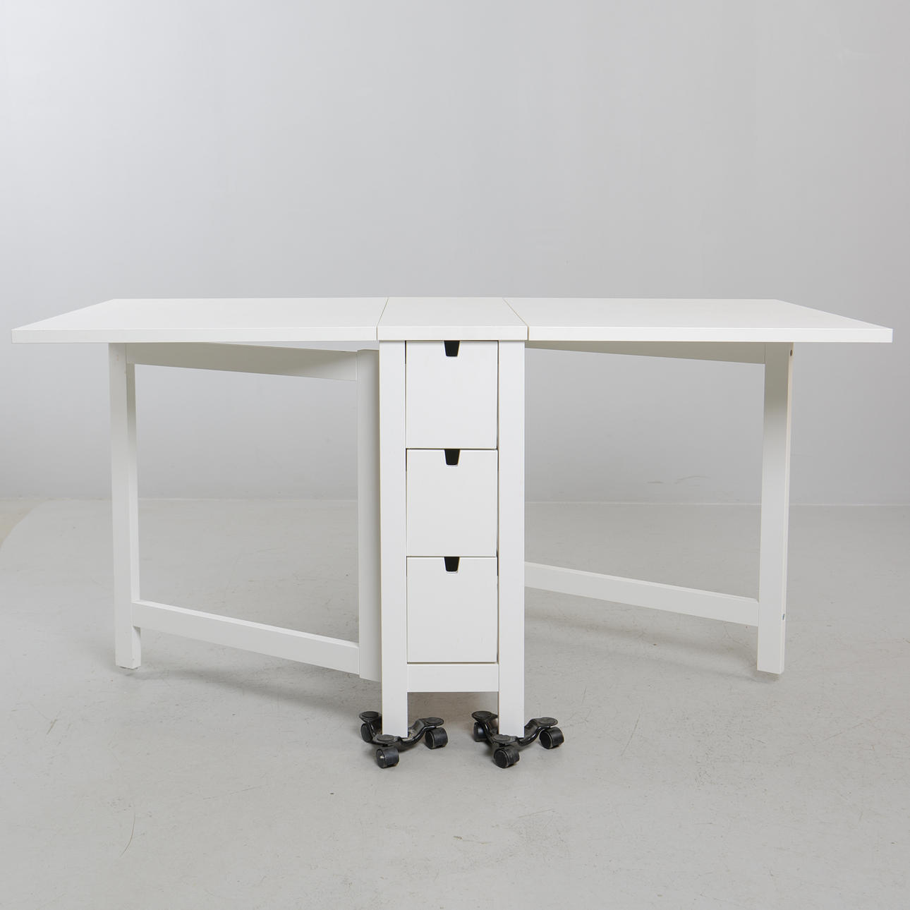 Lacado en blanco. Longitud 26+63+63 cm. Anchura 80 cm. Altura 64 cm.