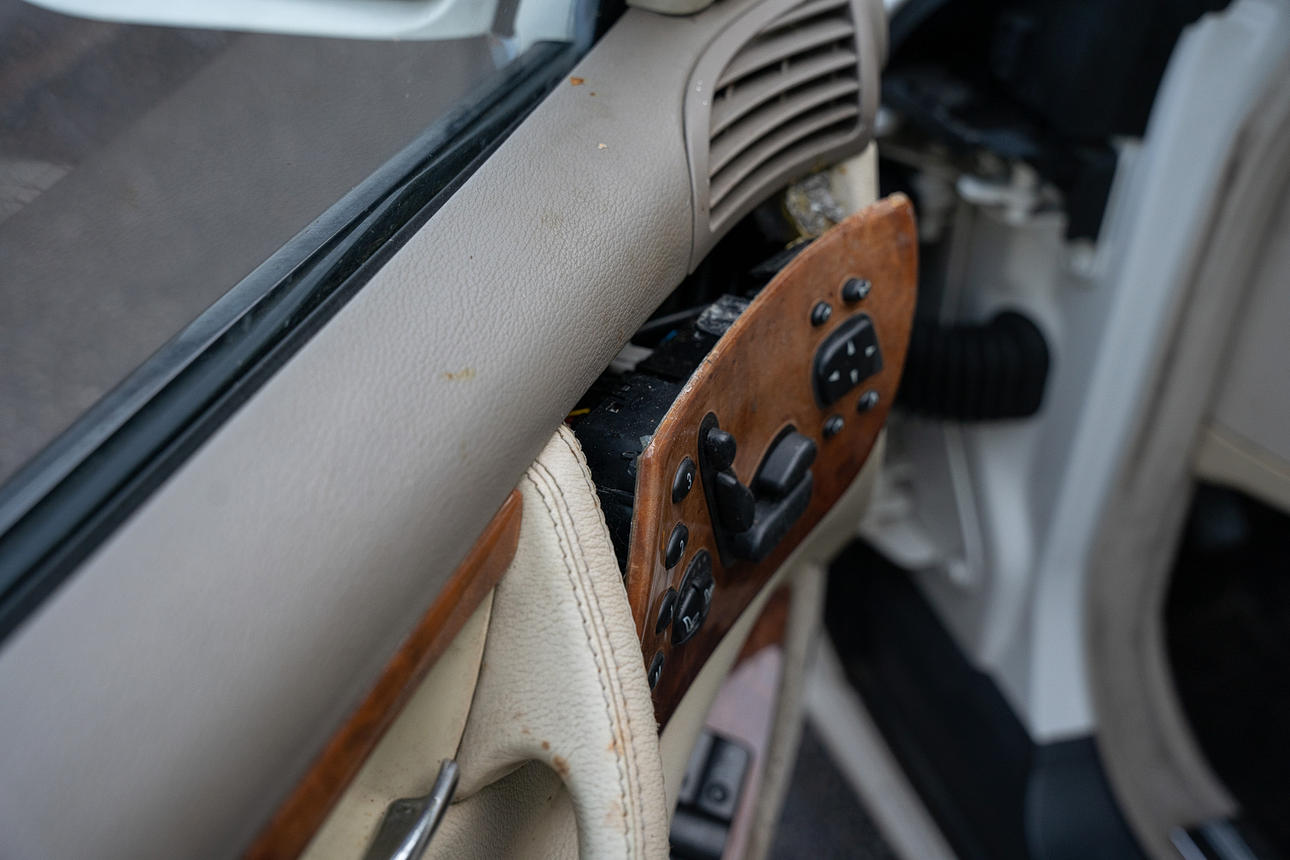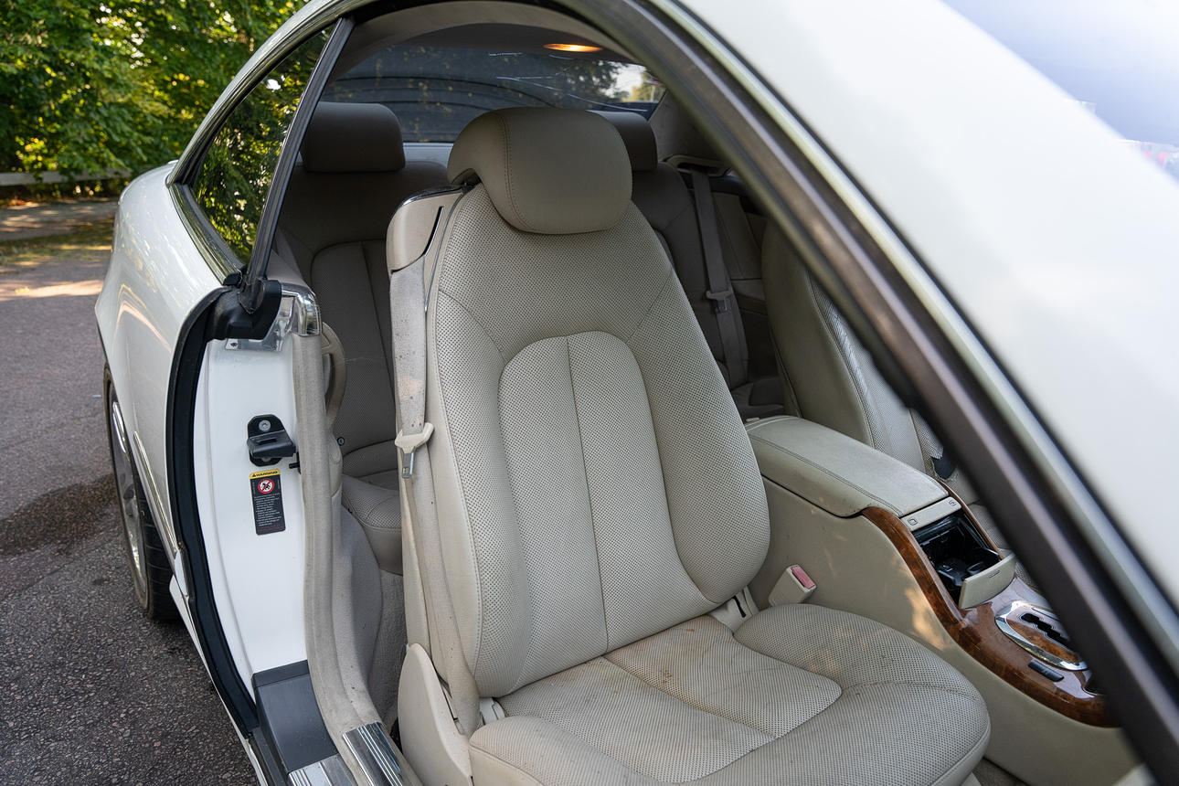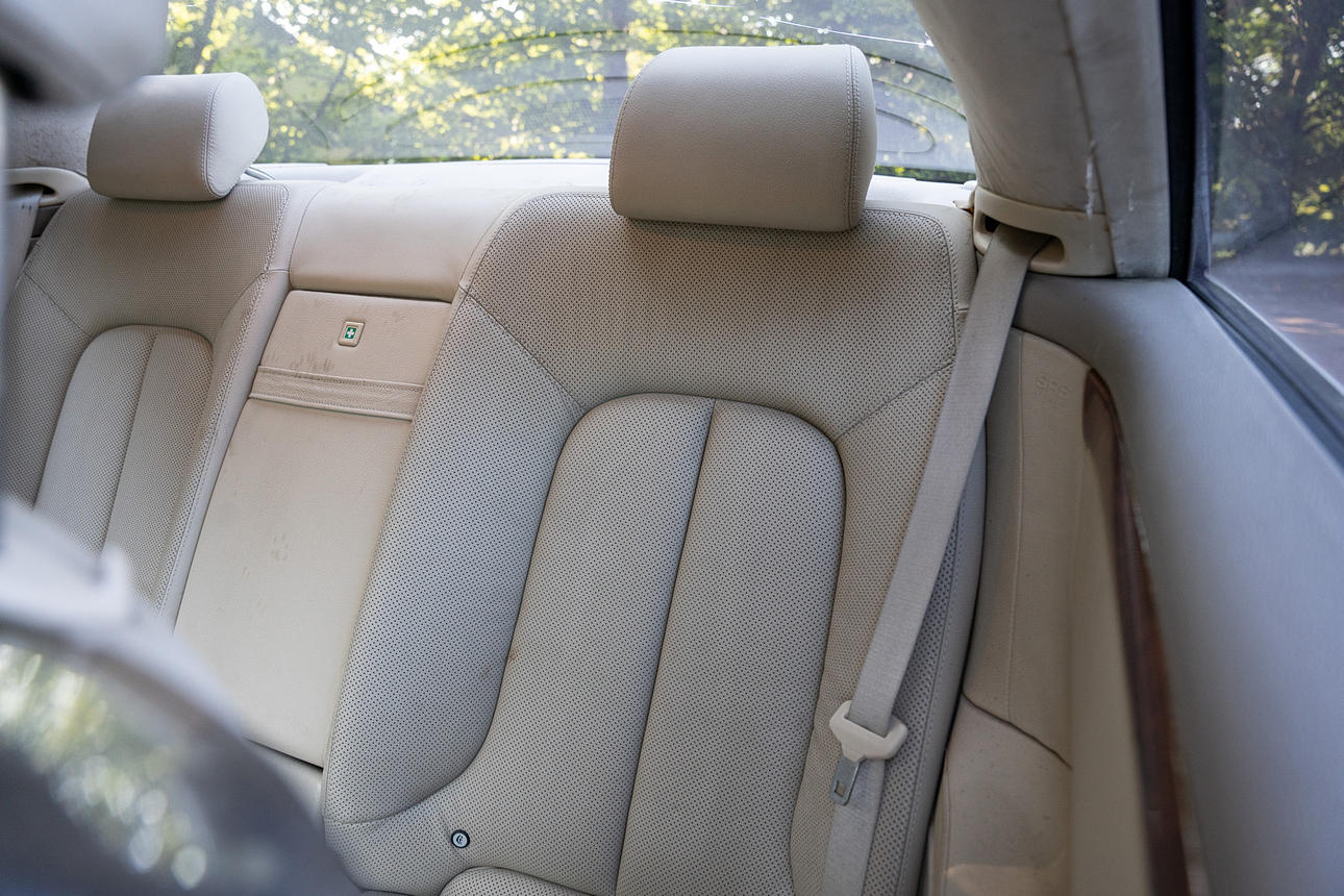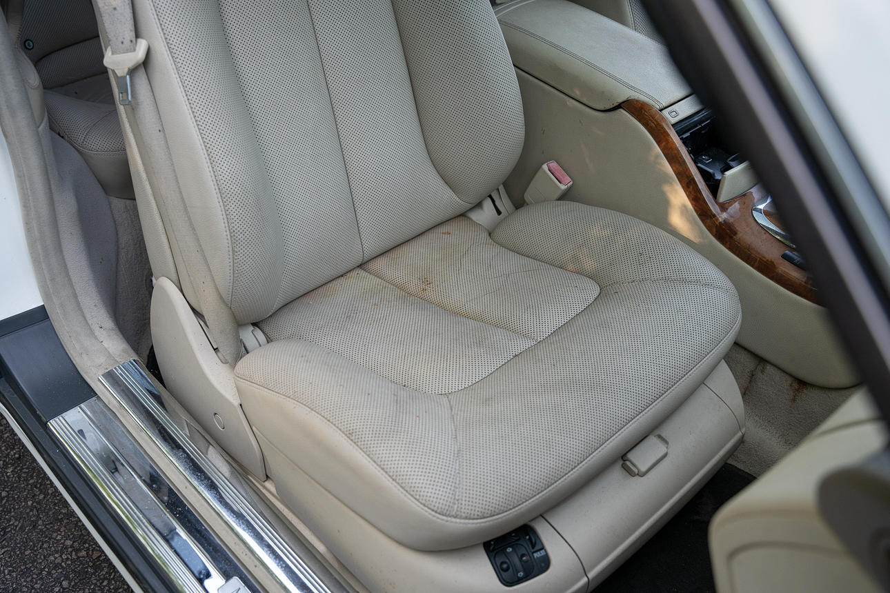 Tapicería: piel de color beige claro, daños en la tapicería del asiento del conductor