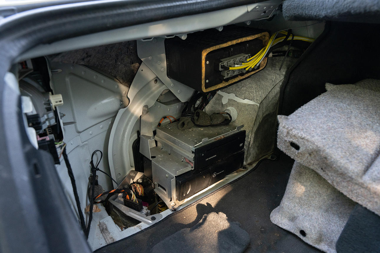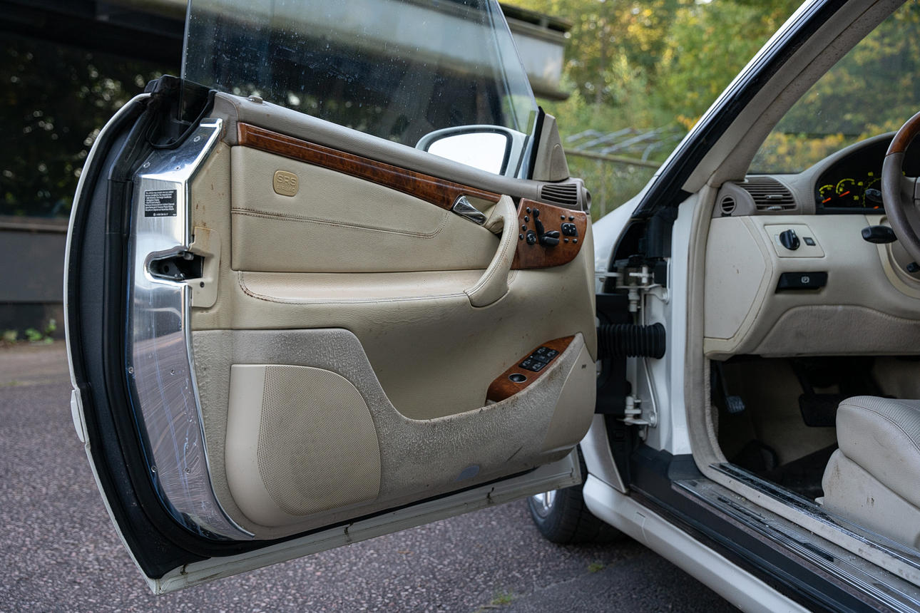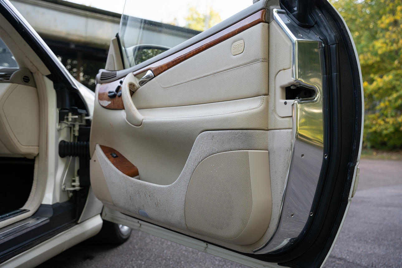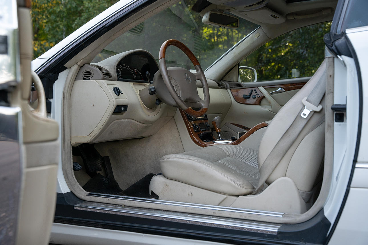 Tapicería: piel de color beige claro, daños en la tapicería del asiento del conductor