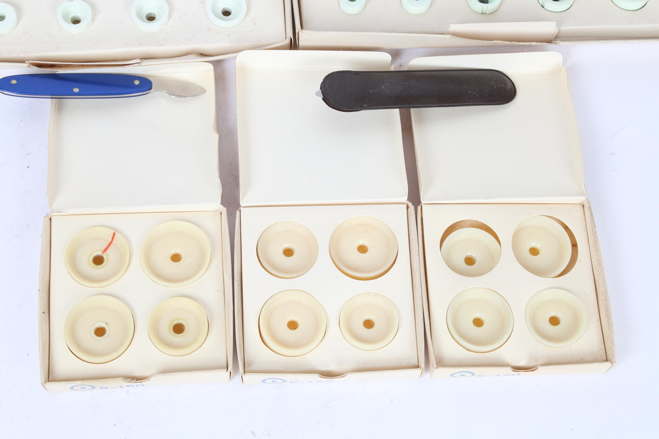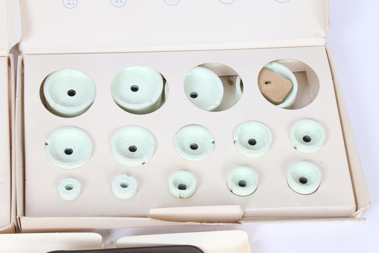 Incluye dos unidades de discos extractores de vidrio S-160 (falta un disco), tres juegos S-150 y dos cuchillas para abrir cajas de relojes (7).