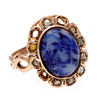 Sortija en oro de 18K, diamantes talla rosa, 0,12 cts aprox. y vidrio esmaltado. Talla 8/48. 3,2 gr.