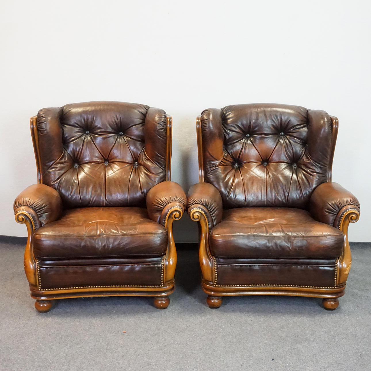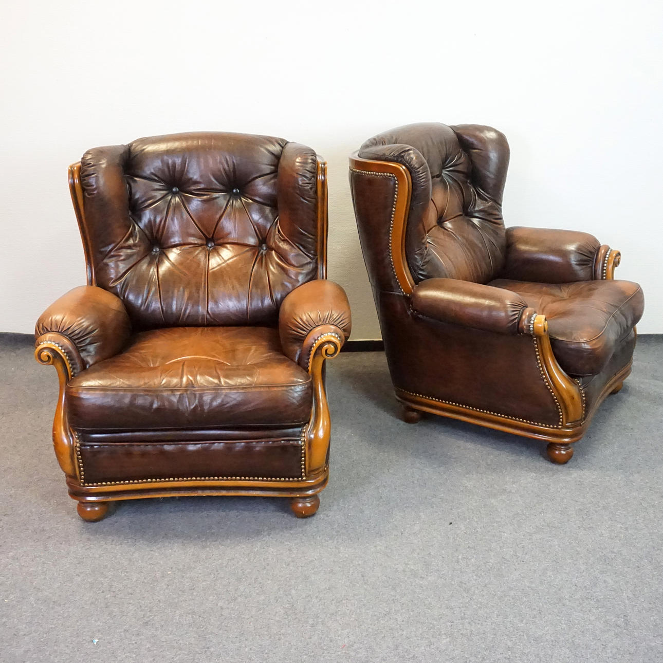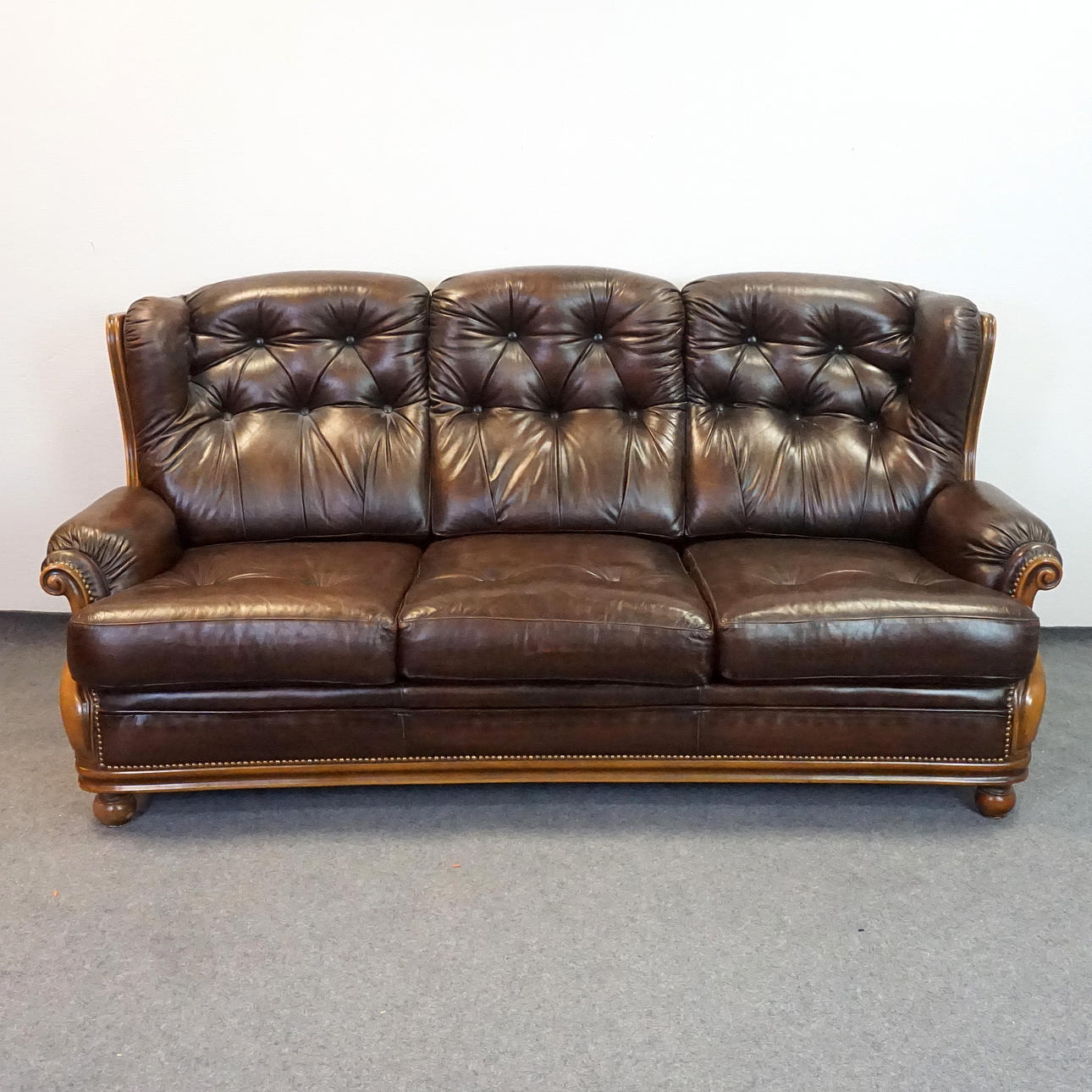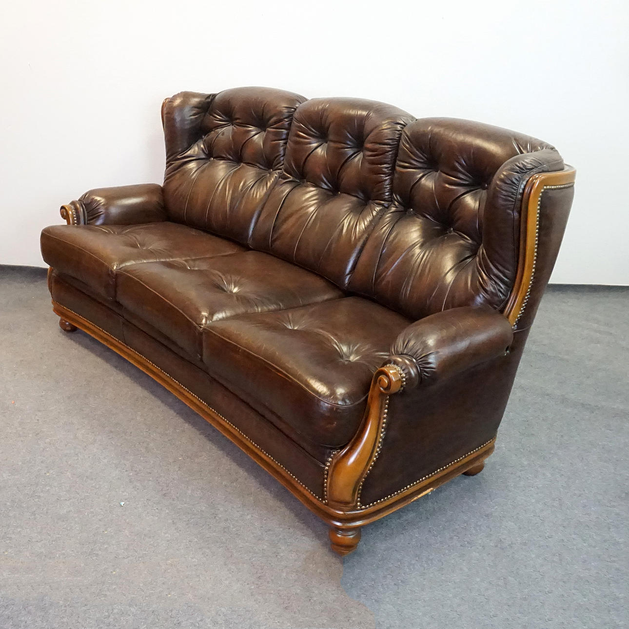 3751609. Un conjunto de sofás de piel de 3 piezas, estilo inglés.