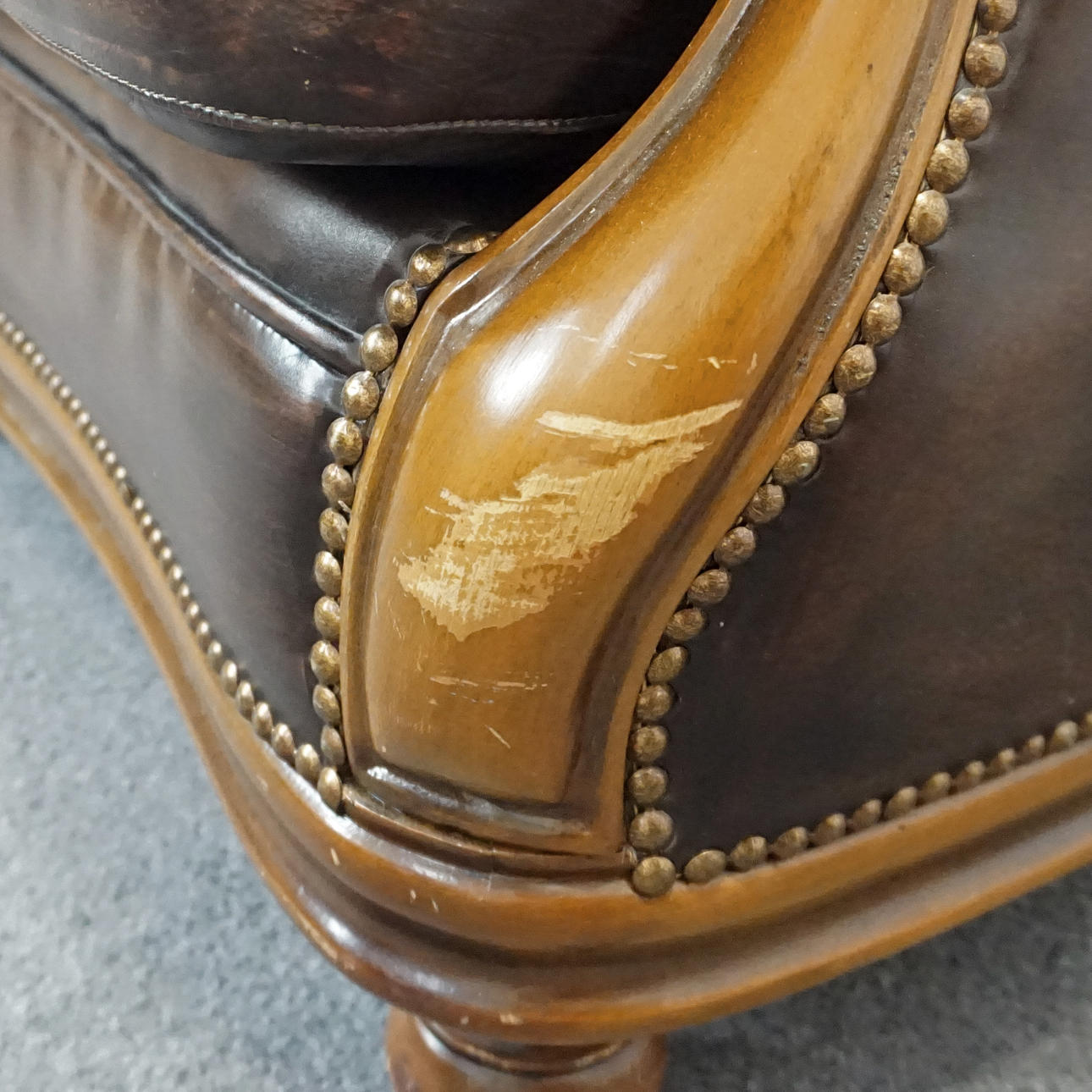 Un conjunto de sofás de piel de 3 piezas, estilo inglés.