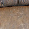 Desgaste, marcas de uñas de gato, piel floja y ondulada en la espalda, marcas de arañazos en la madera.