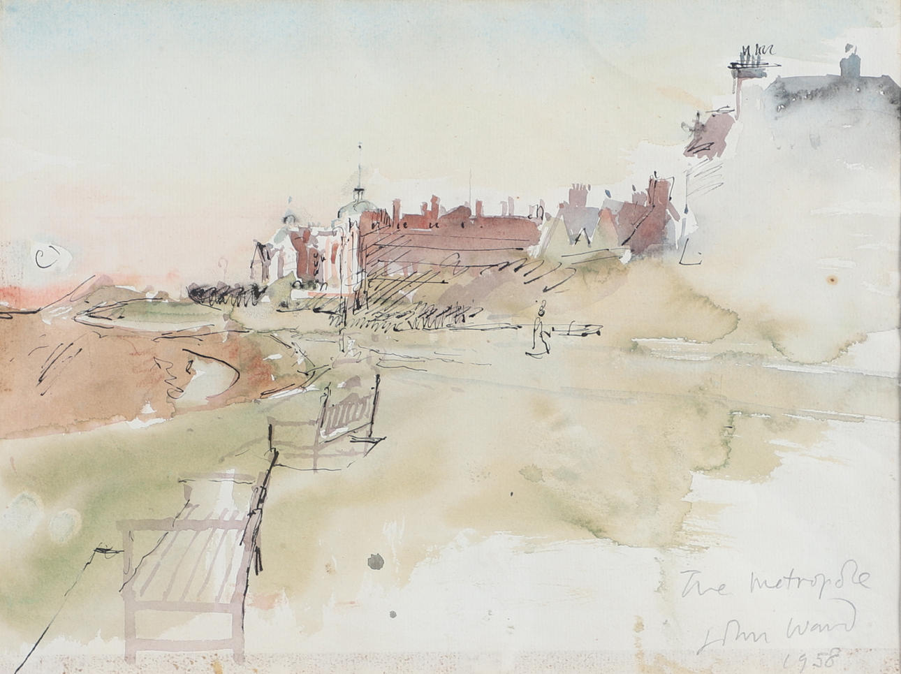 Firmado, titulado y fechado en 1958, acuarela con bolígrafo y tinta negra
