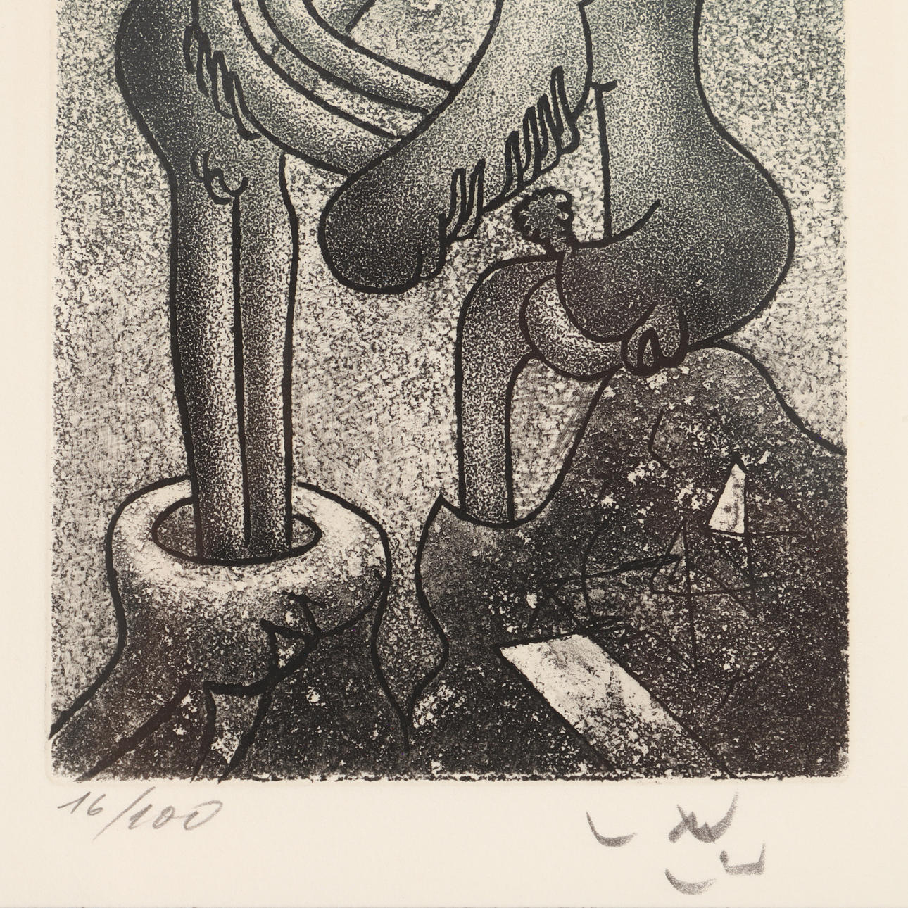 ROBERTO MATTA. Composición de figuras, grabado, firmado.