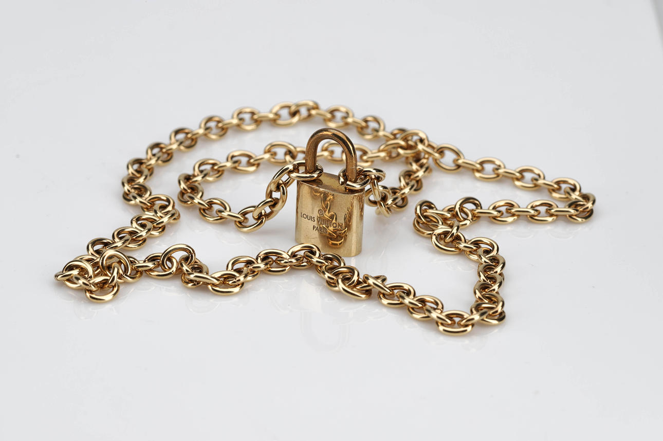 3759221. LOUIS VUITTON, Collar con candado, dorado.