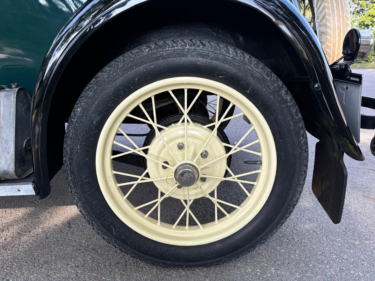 Color: cuerpo verde oscuro con guardabarros negros y llantas de color amarillo claro repintadas de negro. Según se informa, el color verde oscuro es el color original del automóvil.