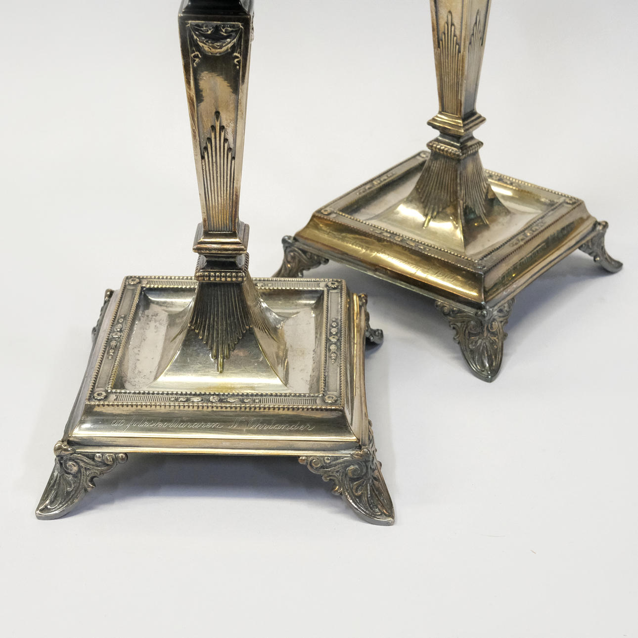 Azucarero con pie, altura 35 cm y GAB, un par de candelabros, altura 26 cm.