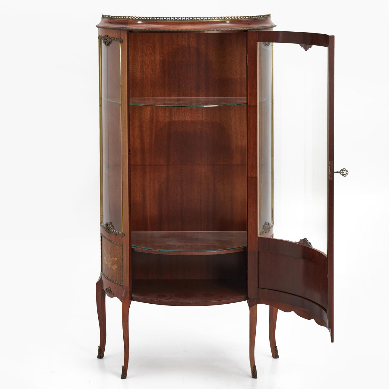 Con laterales arqueados y cristal, decoración de intarsia.