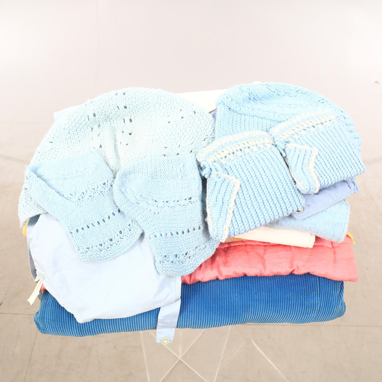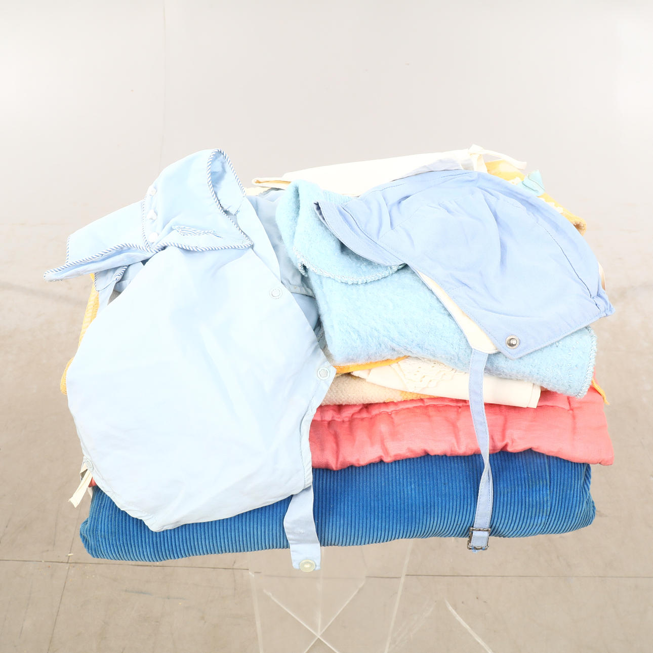 Un lote de ropa para bebés de los años 50 y 60 aproximadamente. Incluye bolsas de montar, mantas, etc.