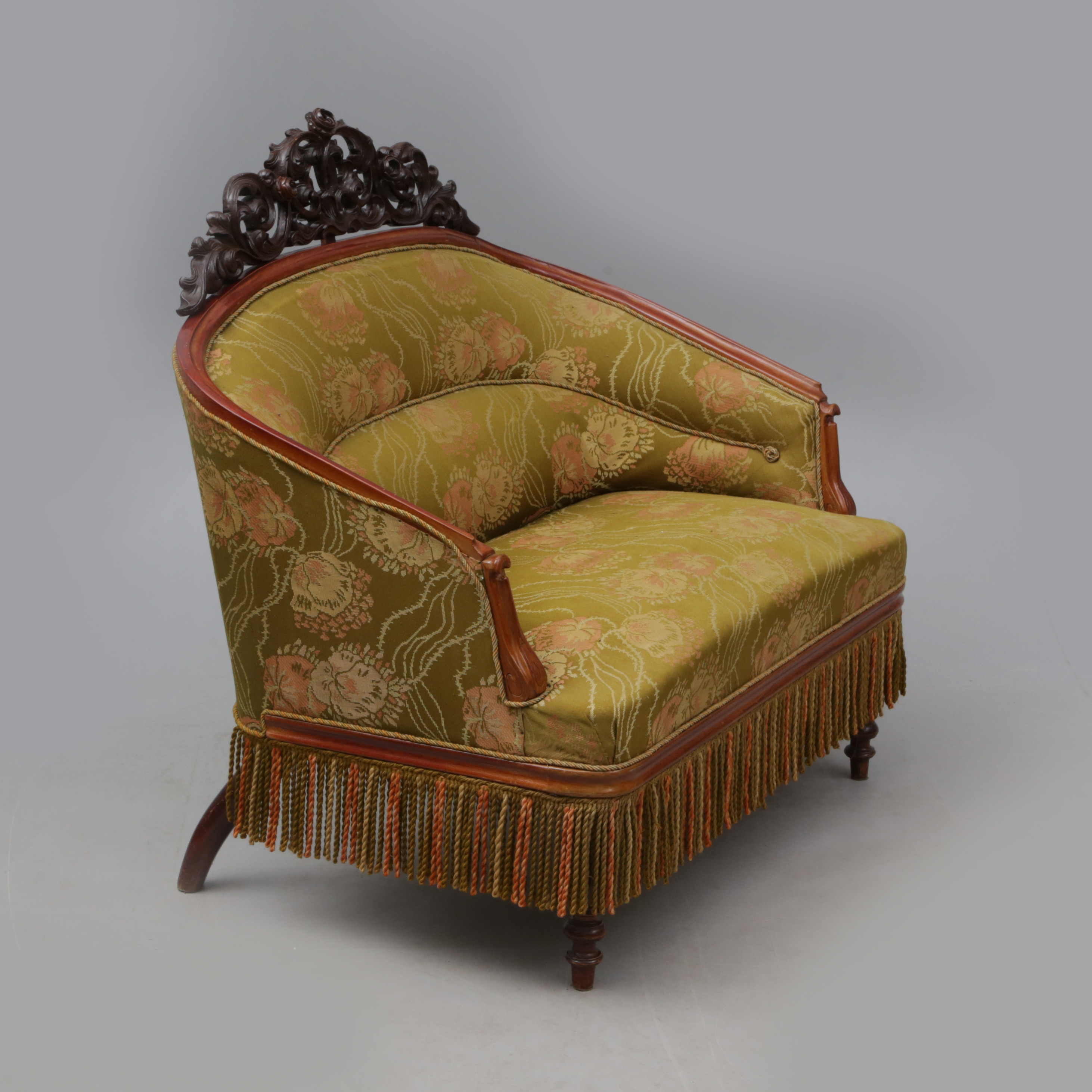 3799468. Un mini sofá de textil/madera, de finales del siglo XIX.