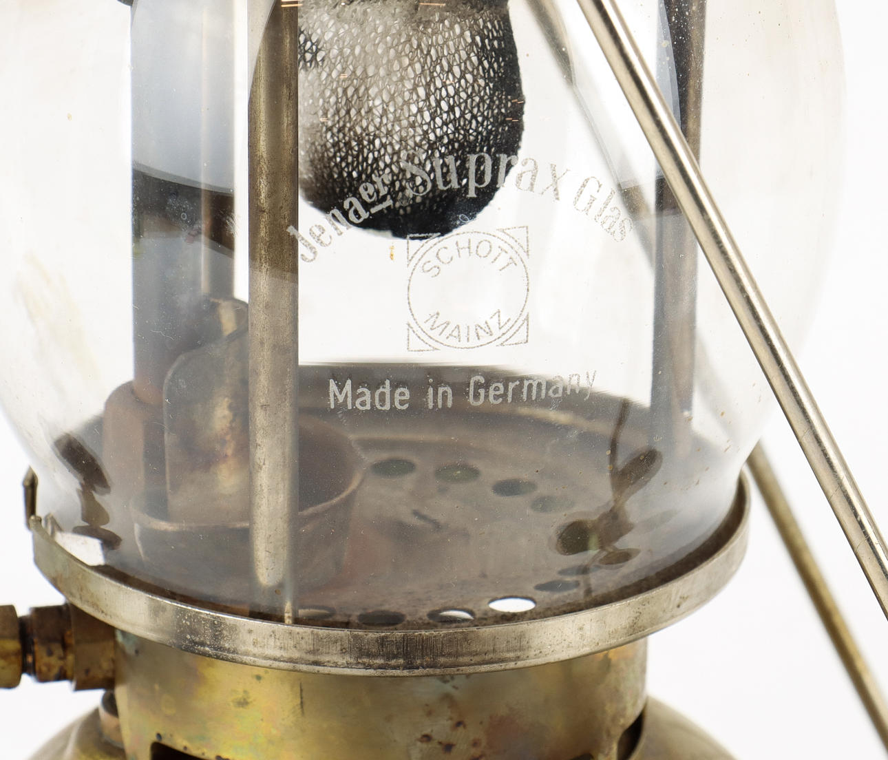 Latón. Vidrio transparente con la inscripción «Optimus».