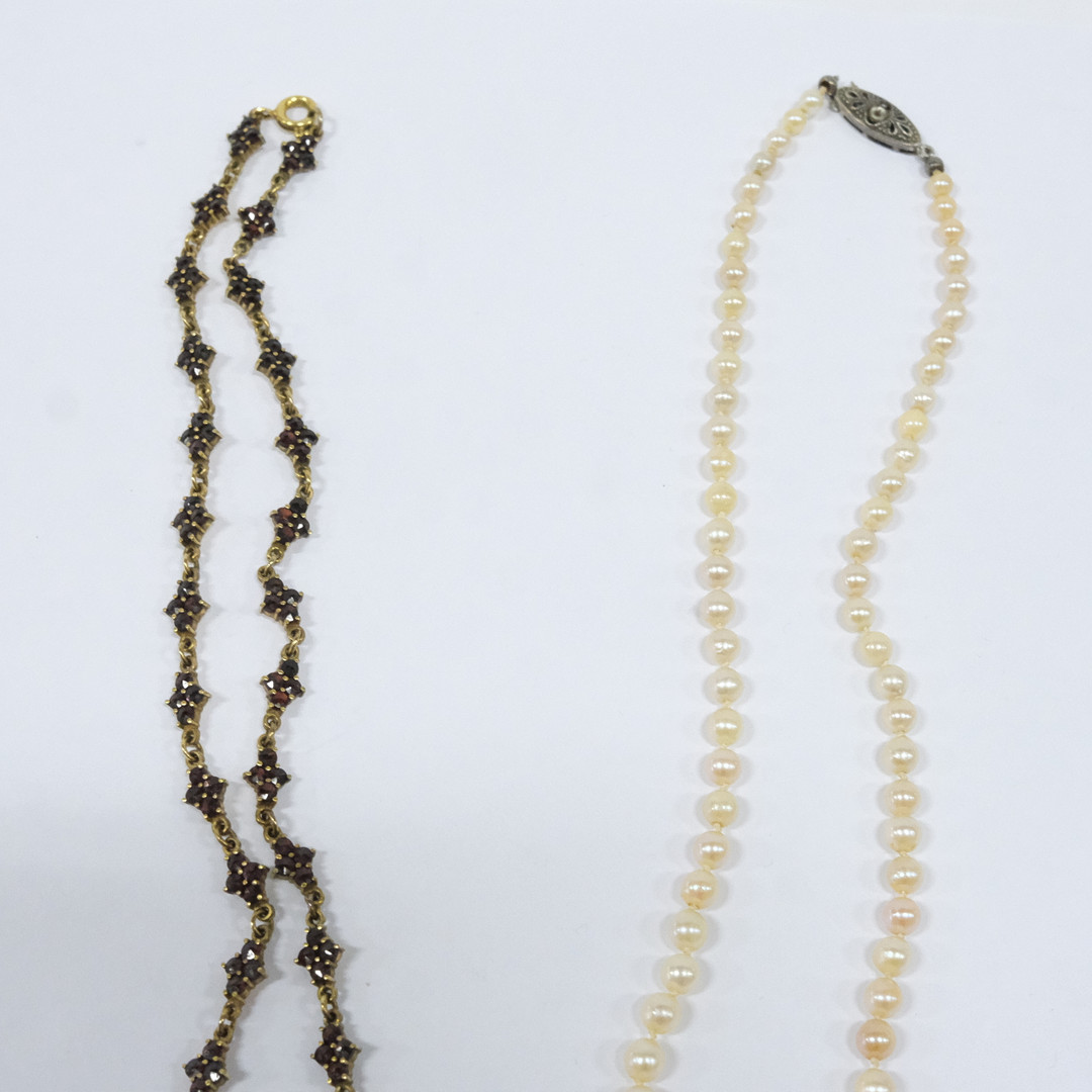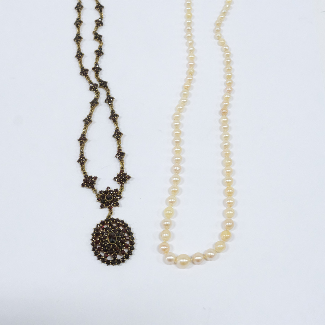 3805347. COLLAR CON GRANATES Y COLLARES DE PERLAS.