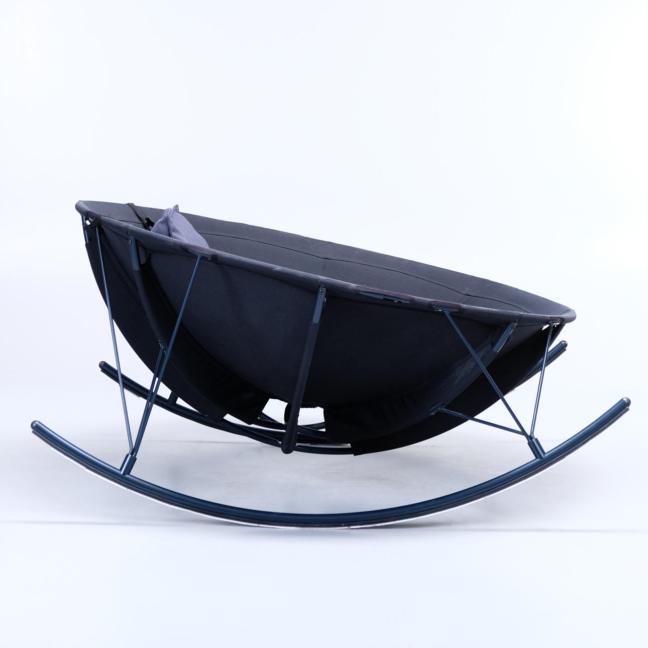 Fabricado en acero lacado negro, tapizado en tela negra. Almohada para la cabeza incluida