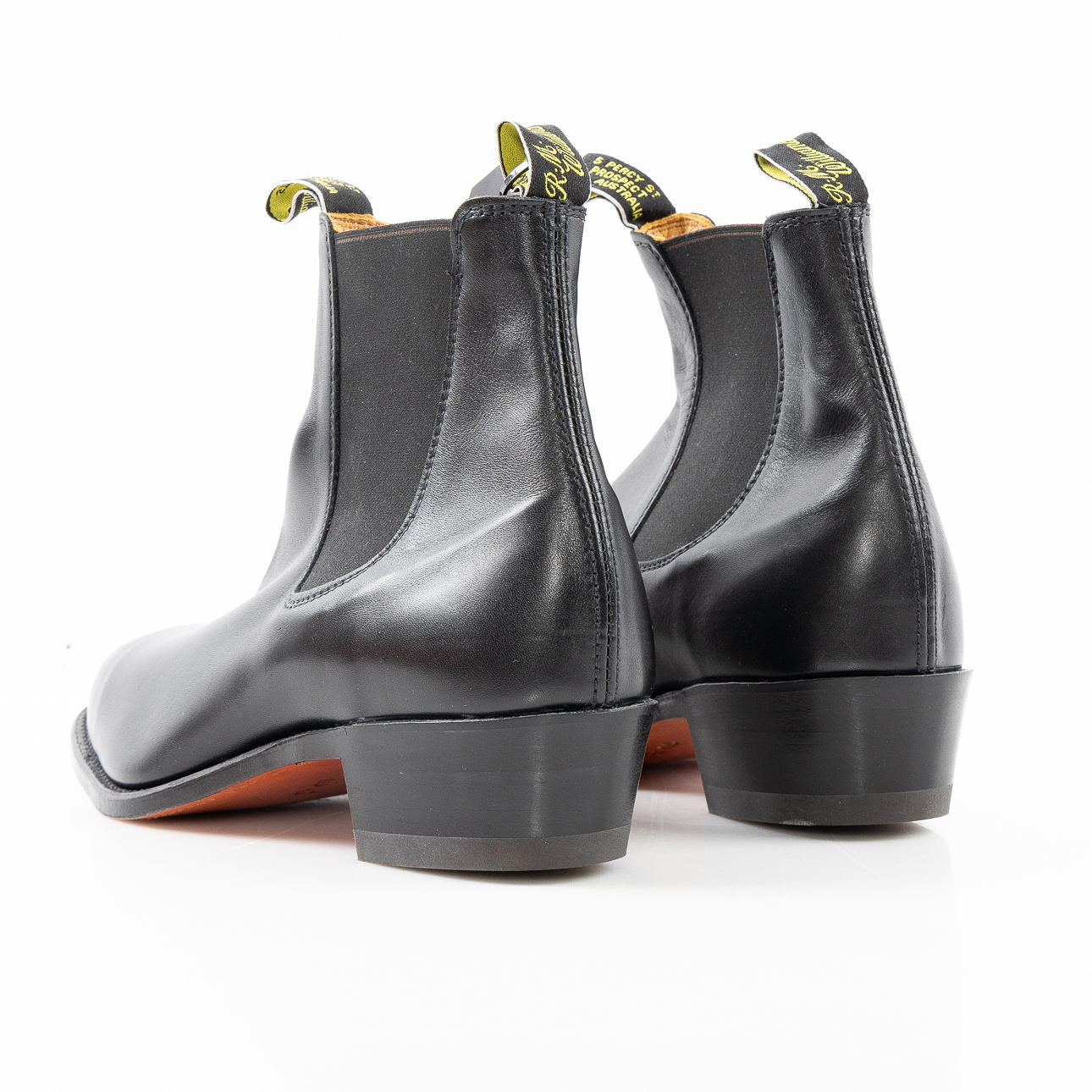 En piel negra, negro Yaerling. Dimensiones interiores: 30 cm aprox. En caja de zapatos original. 38 x 23 x 12 cm.