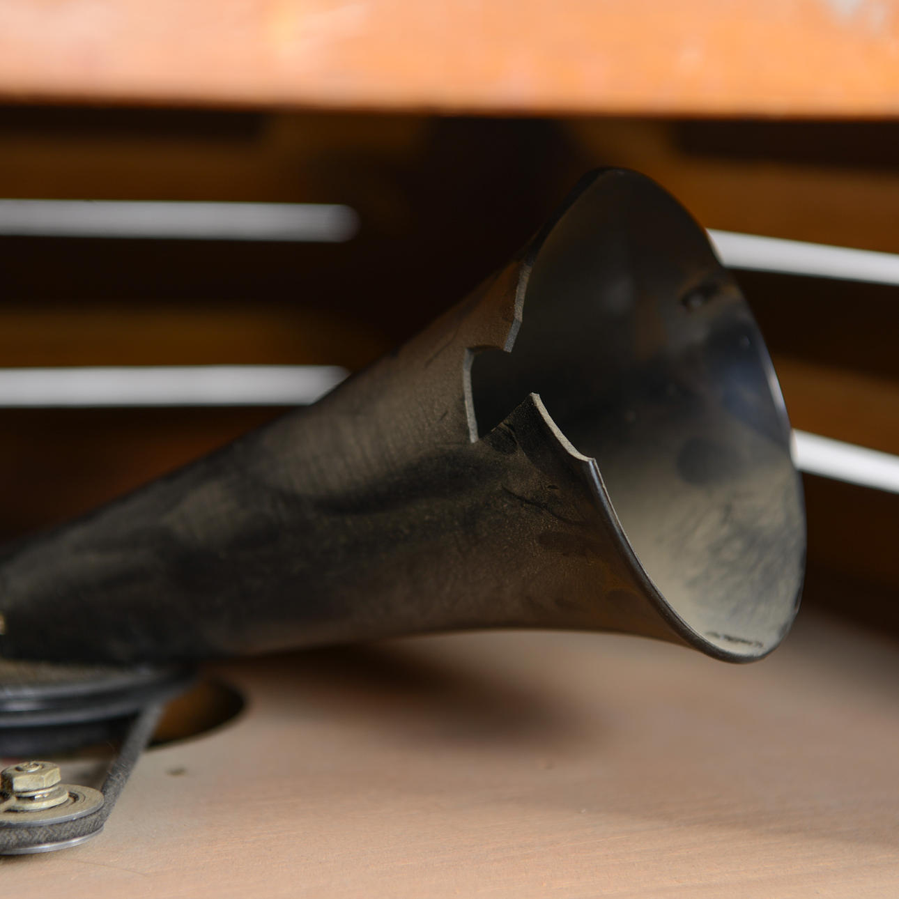 Altavoces con tapa giratoria. La carcasa es de nogal.