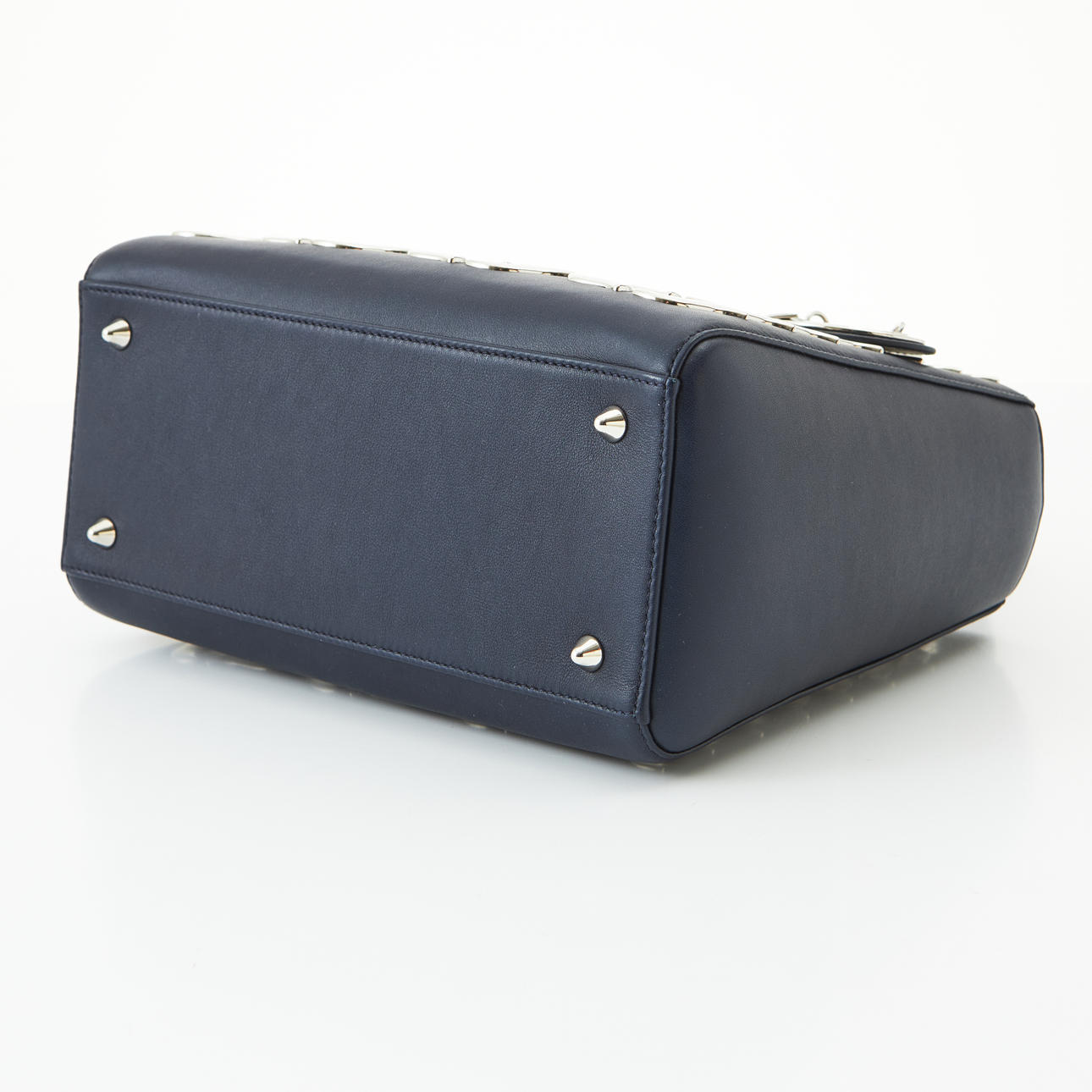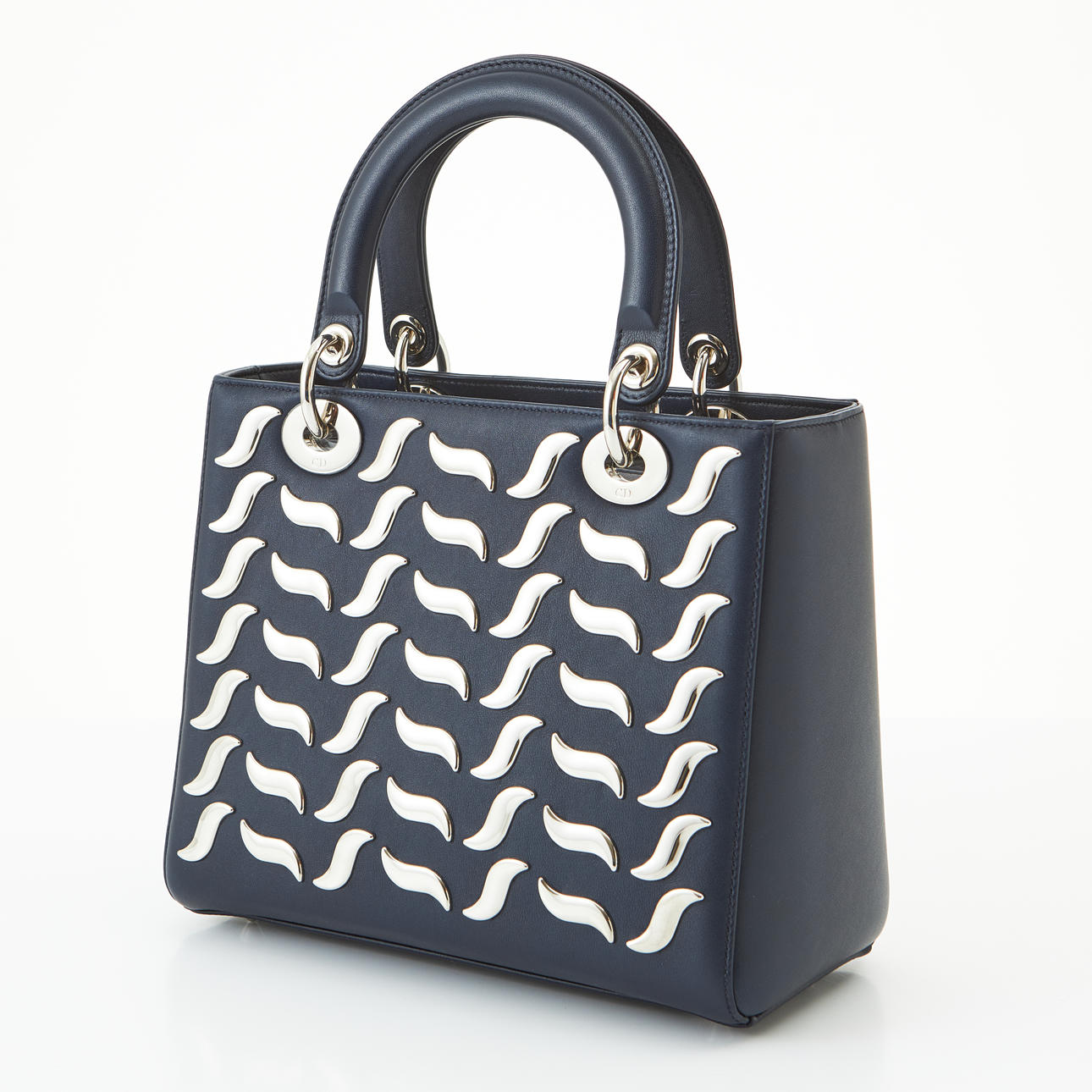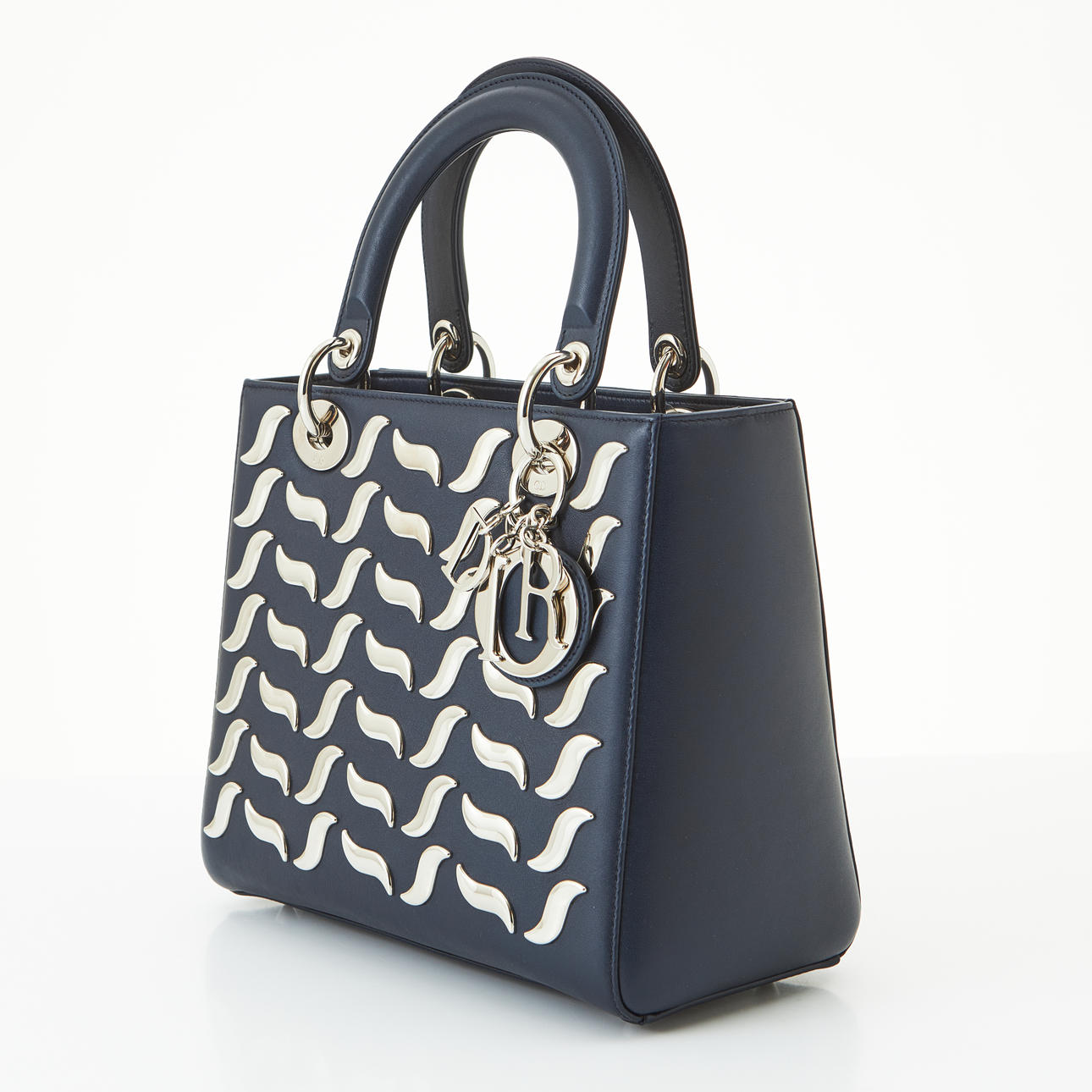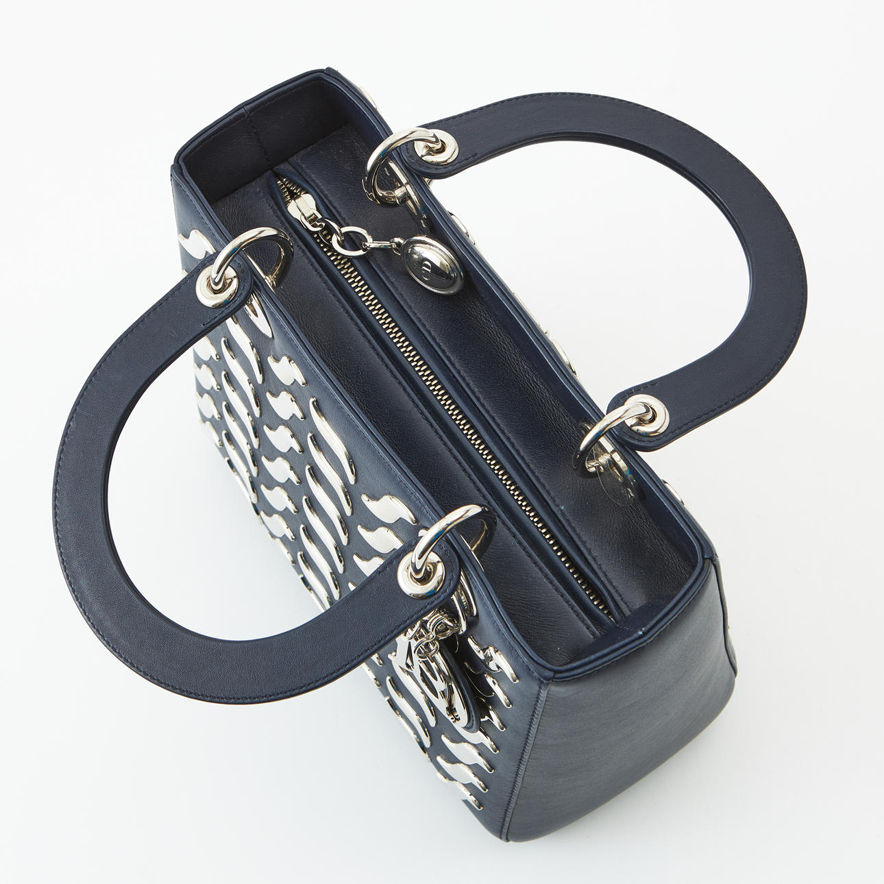 Bolso de mano con cremallera en piel azul marino y herrajes plateados. Dos compartimentos interiores, uno de ellos con cremallera. . Marcado como «Christian Dior PARIS», «Hecho en Italia», numerado y con Carte d'Authenticite. 24 x 20 x 10 cm