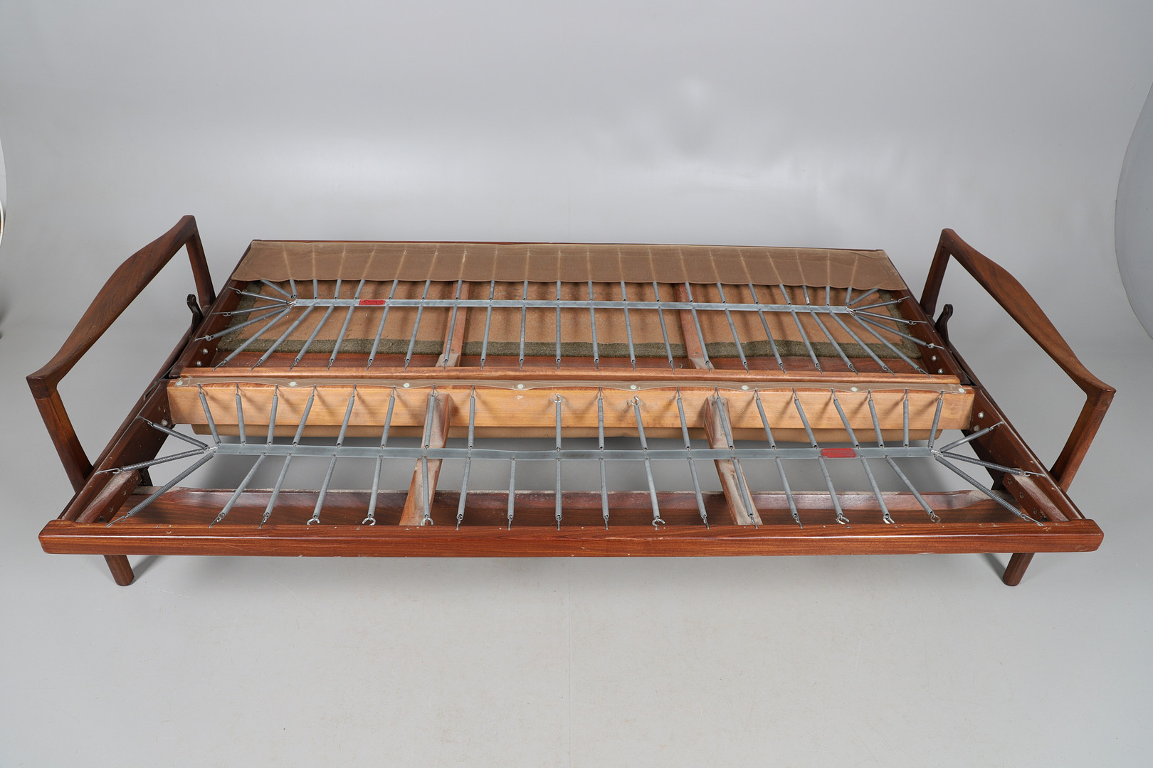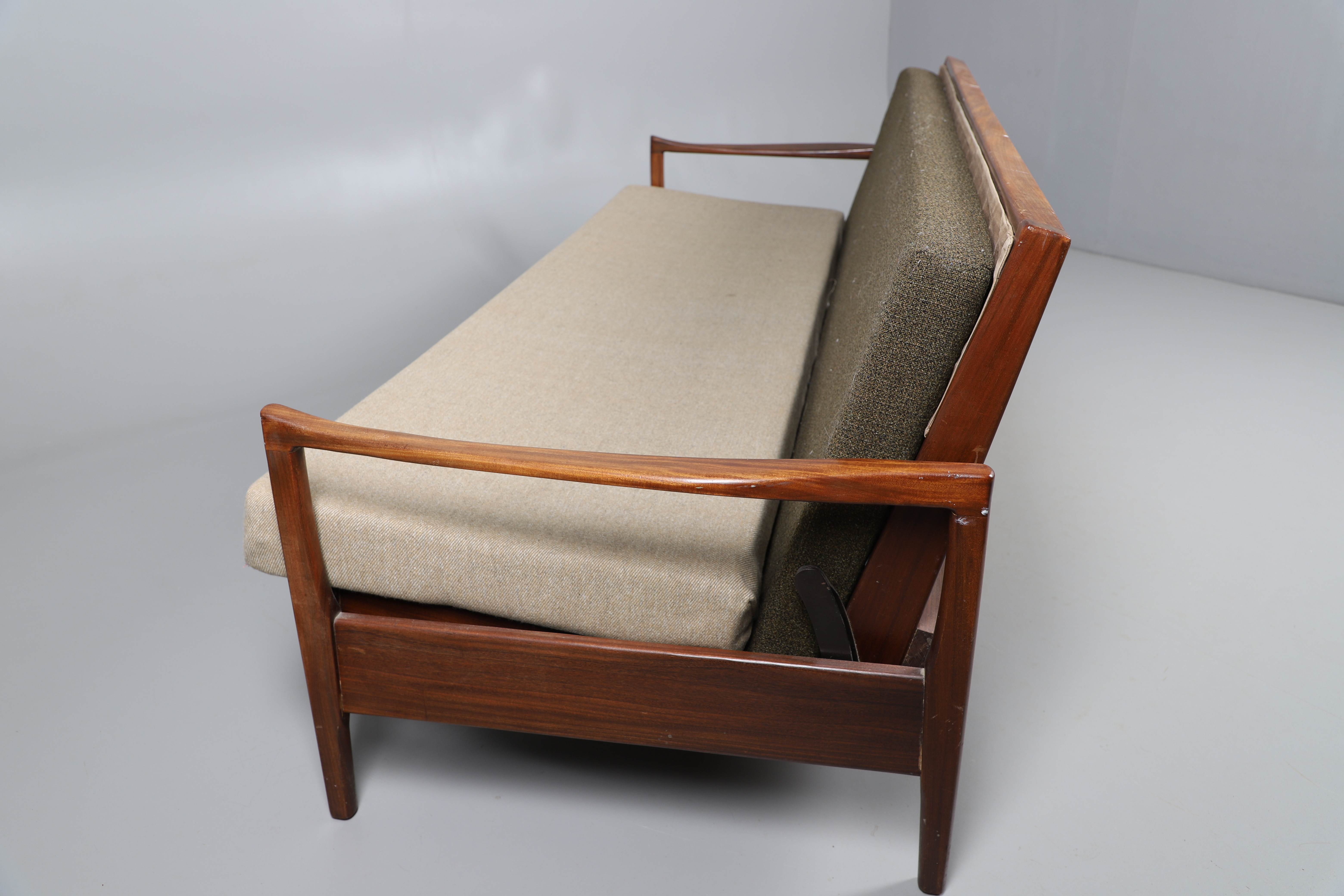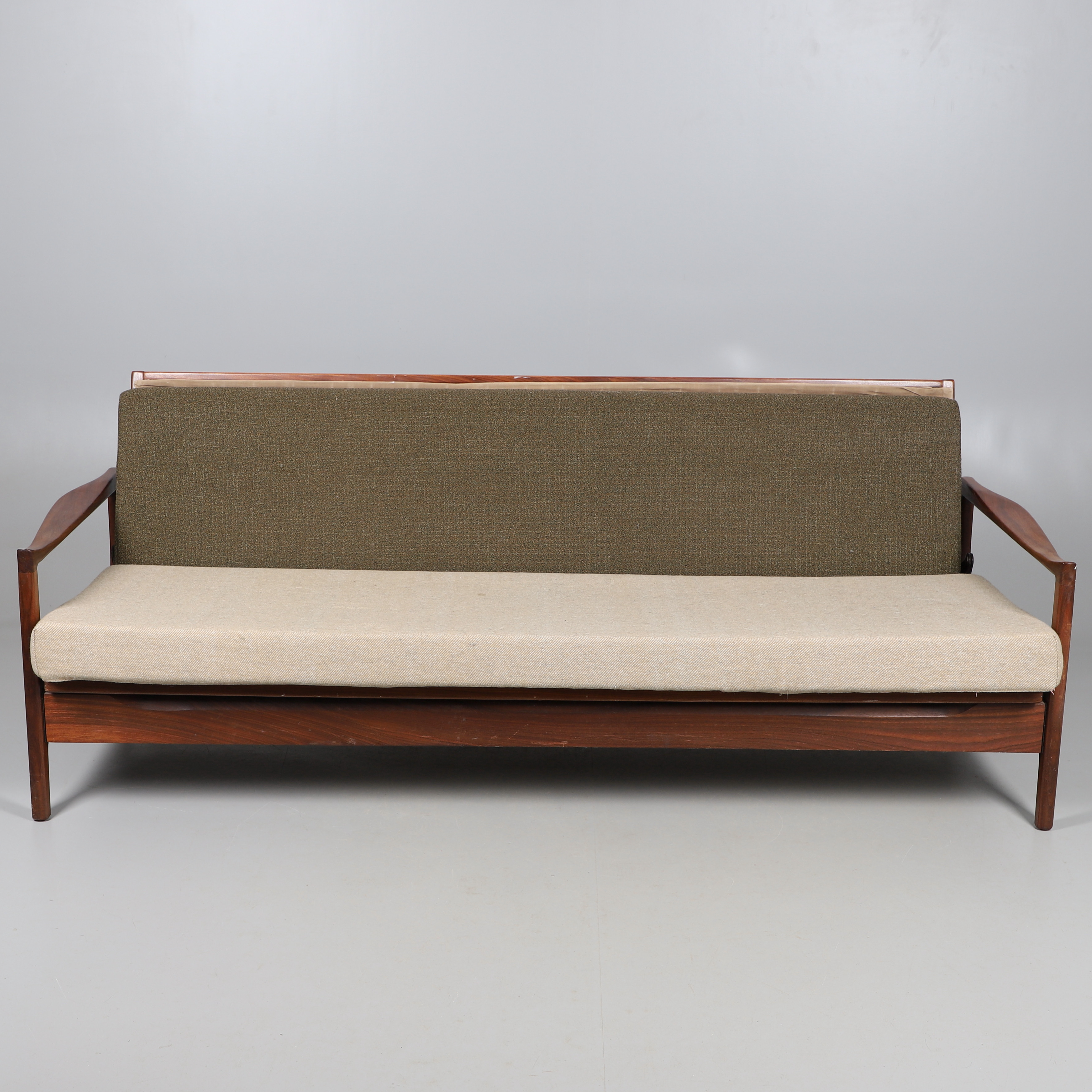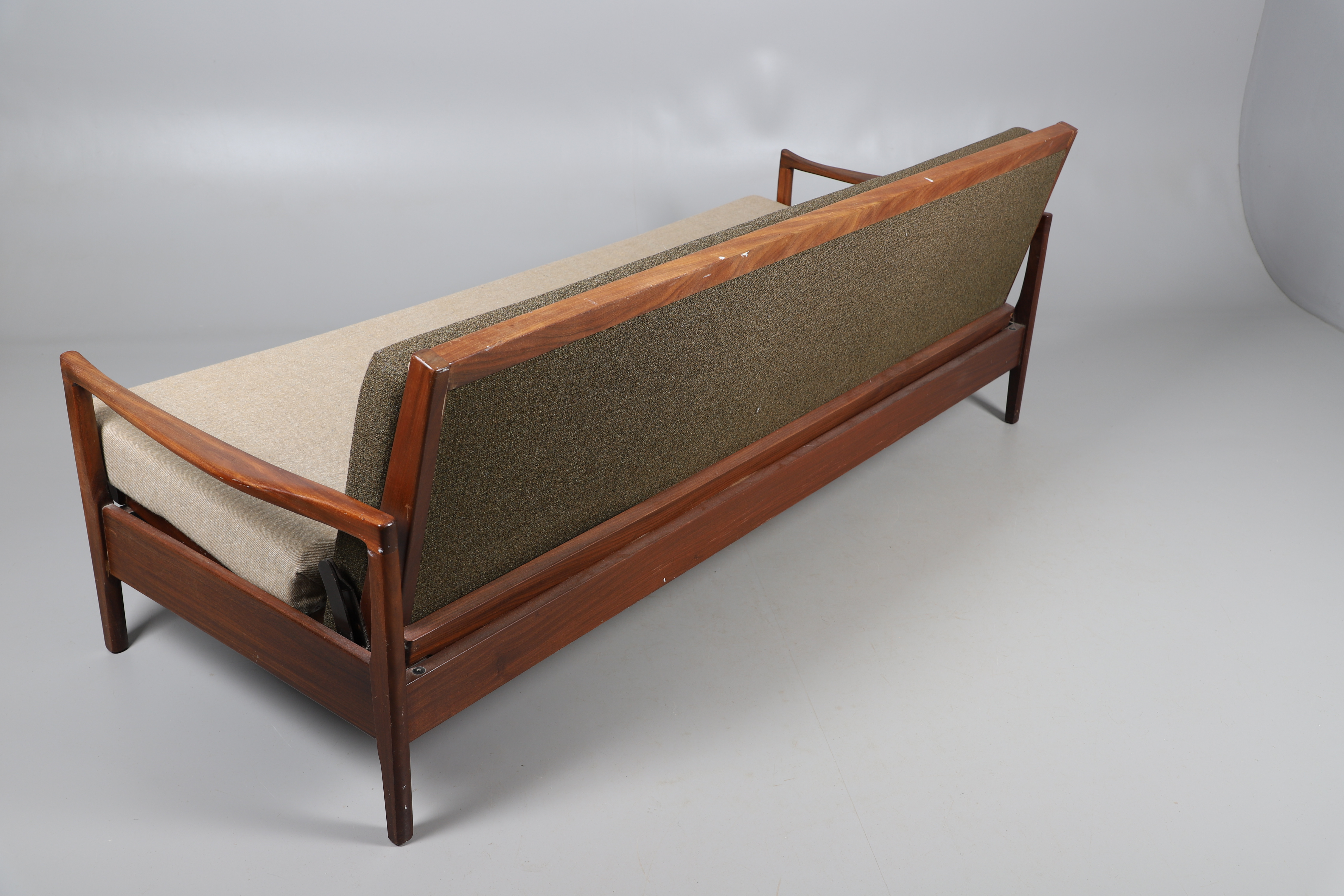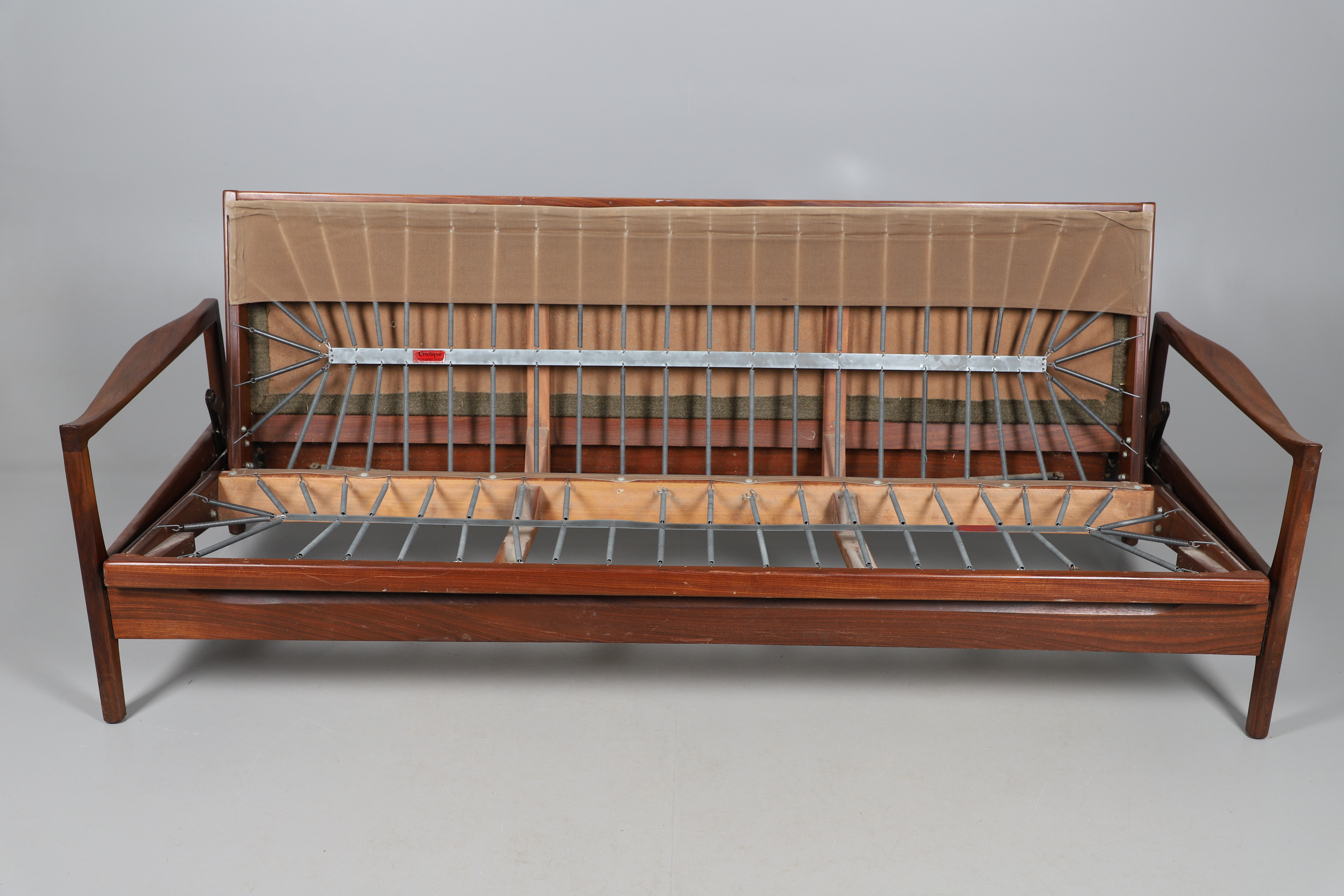 3824039. SOFÁ CAMA CINTIQUE DE TECA DE MEDIADOS DE SIGLO.