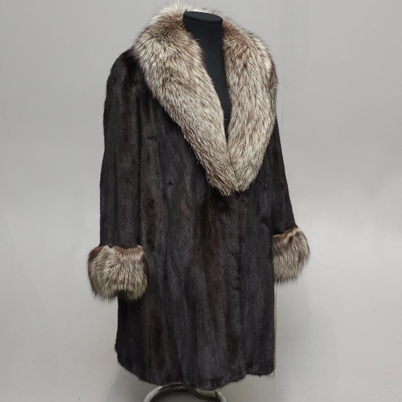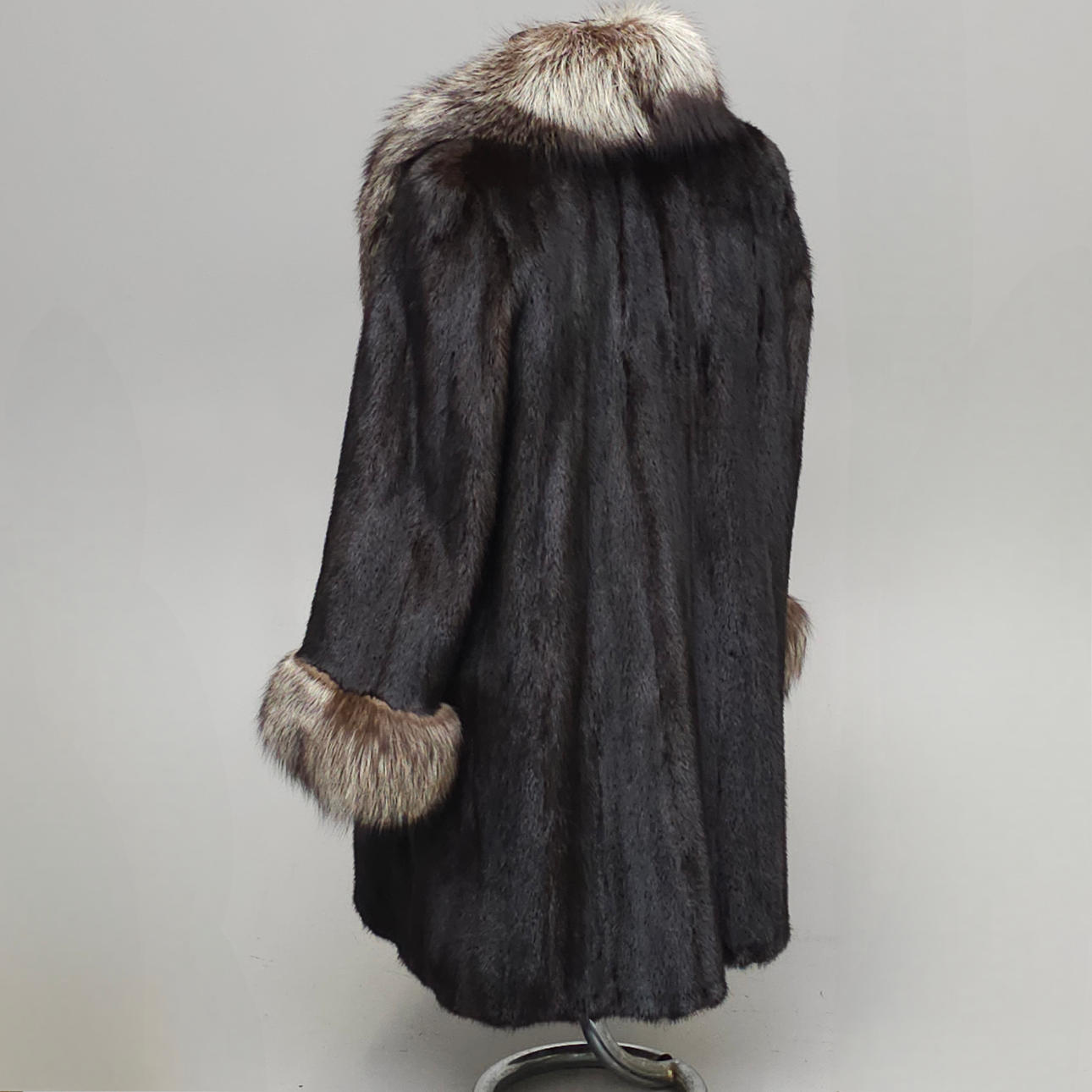 ABRIGO DE VISÓN CON CUELLO Y PUÑOS DE ZORRO.
