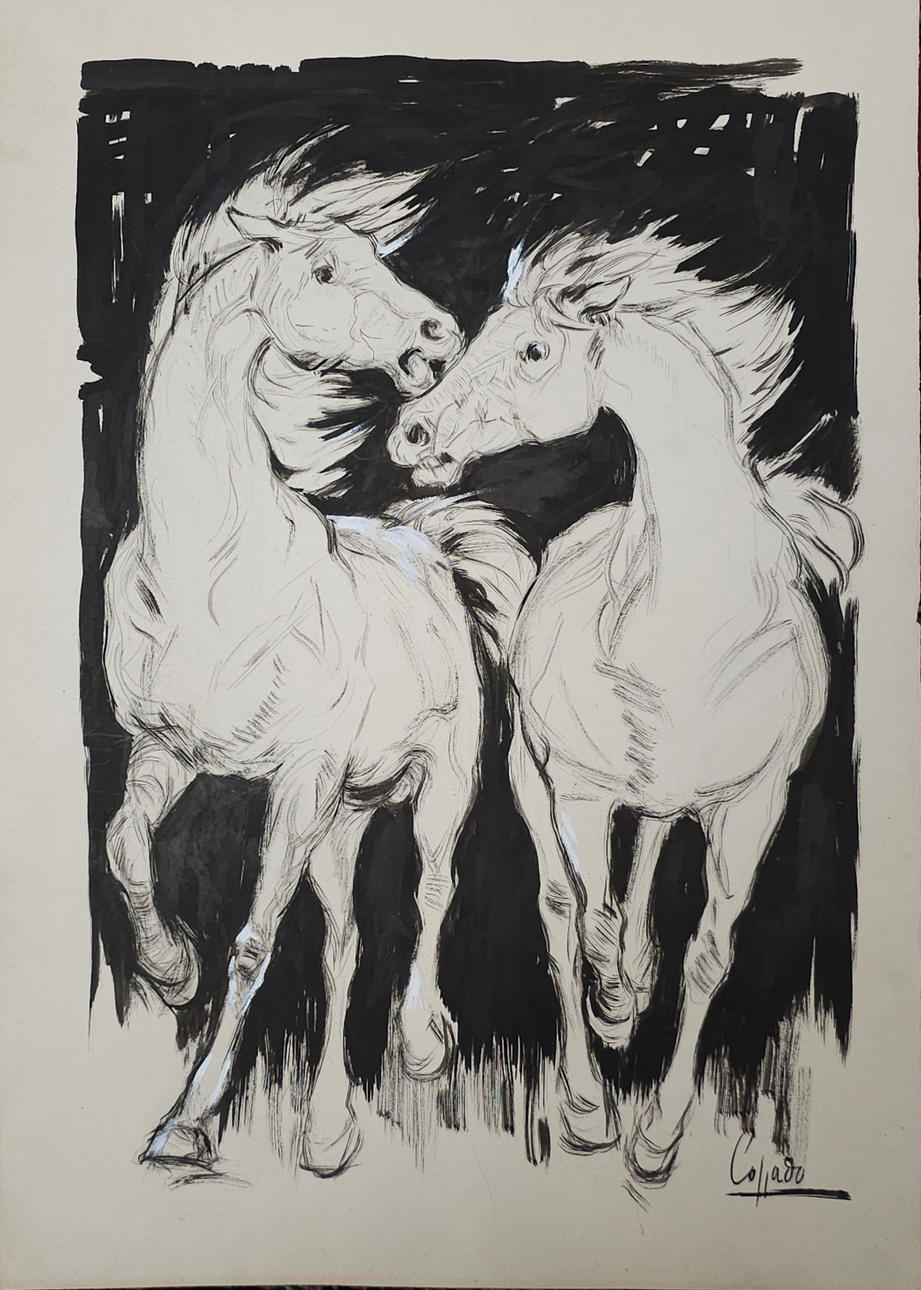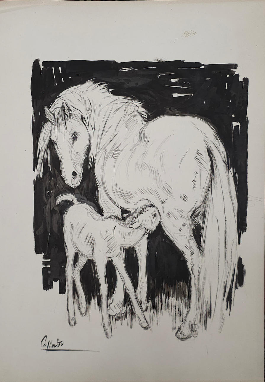 COLLADO. CABALLOS. TRES DIBUJOS A TINTA SOBRE PAPEL.