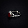 Un anillo de plata 925 engastado con un rubí de talla redonda (M.5).