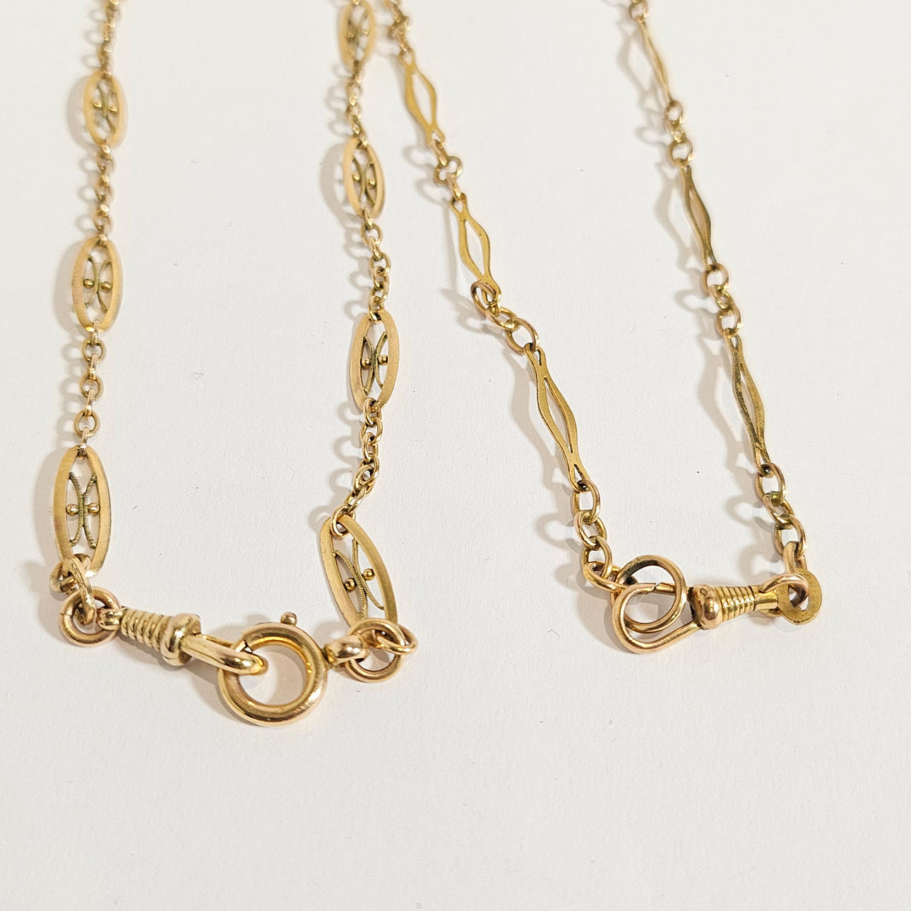 2 LEONTINAS EN METAL DORADO.