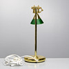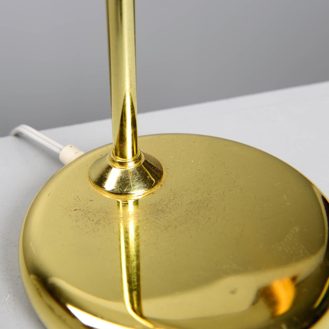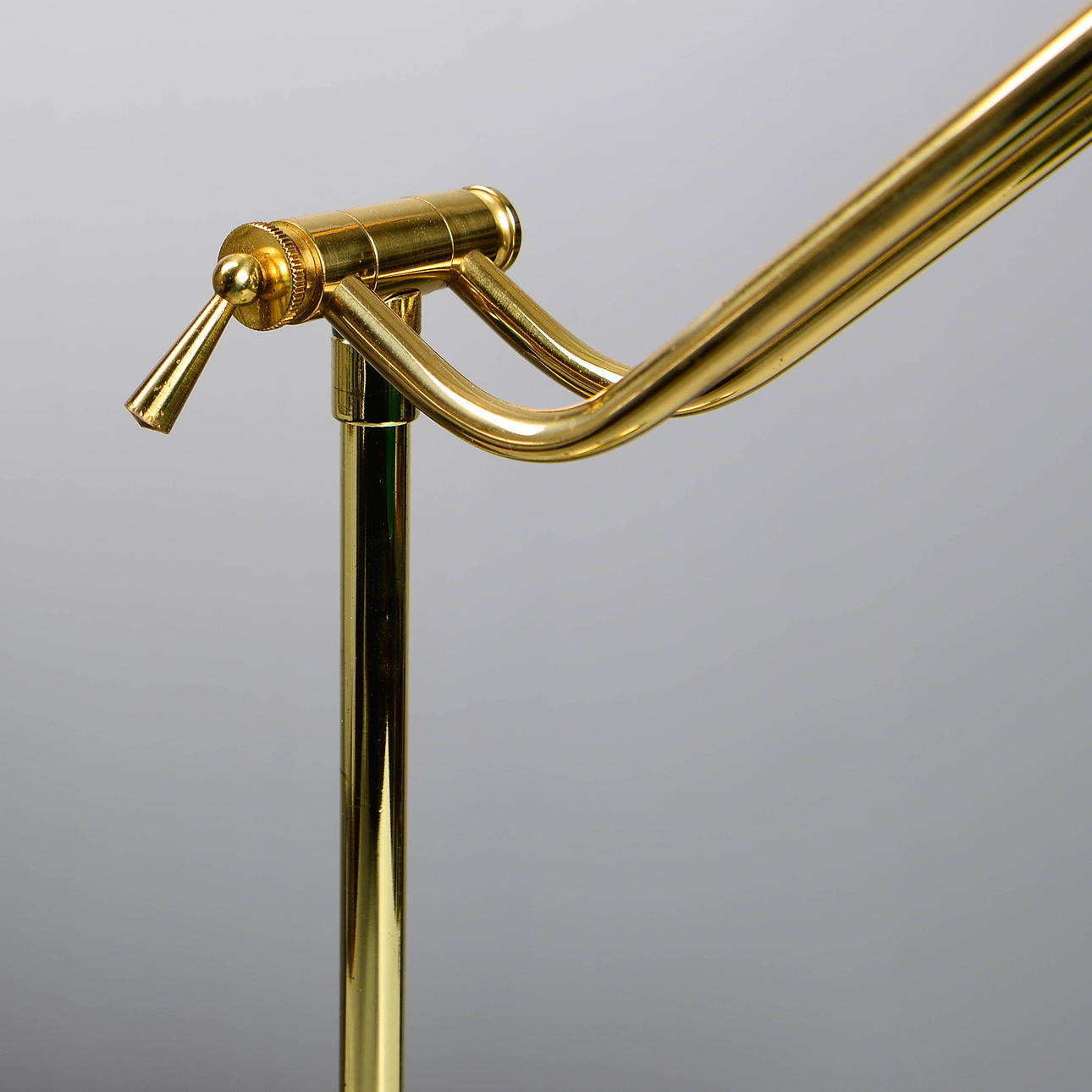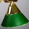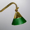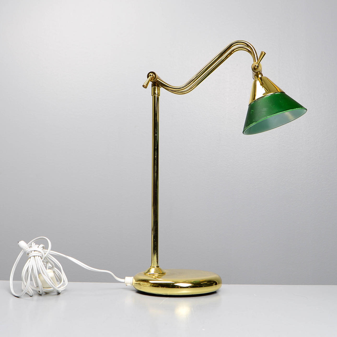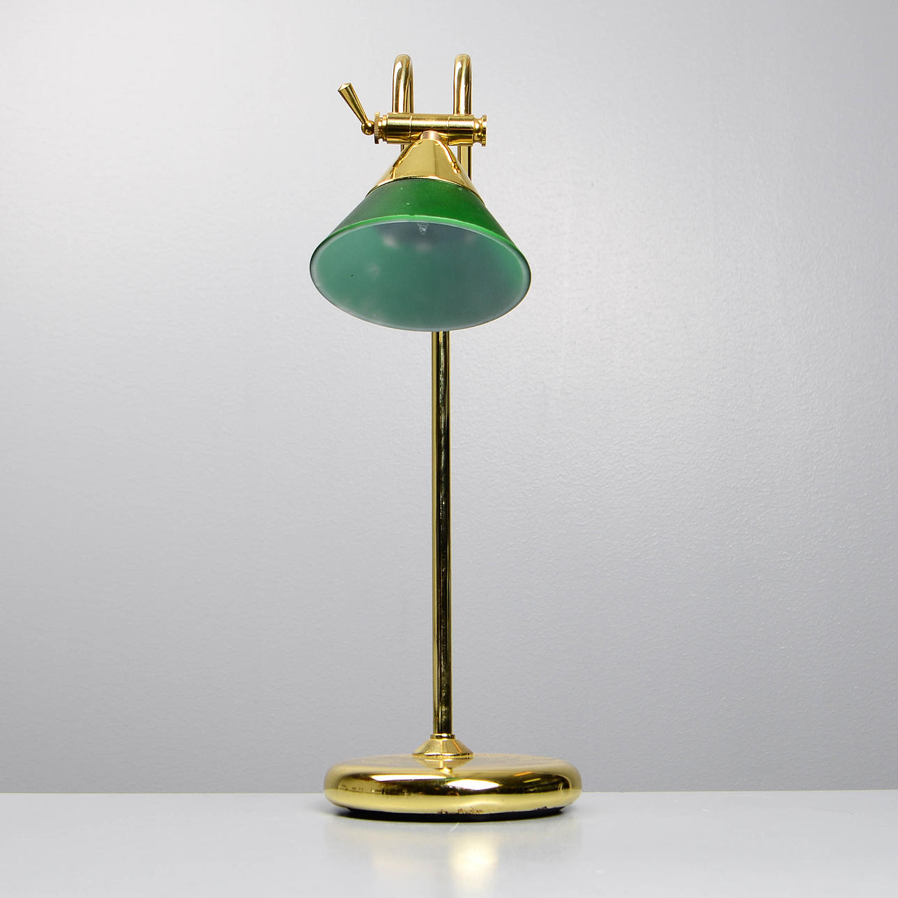 Pantalla de latón y cristal verde. Es ajustable. Altura aprox. 44 cm.