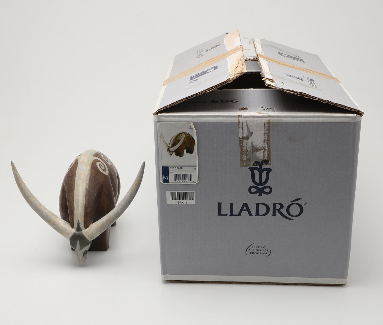 Incluye un modelo en caja de un cebú africano con acabado mate (24,5 cm de largo). También incluye un modelo Lladró en caja de un Oryx en acabado mate (36,5 cm de altura). (2).