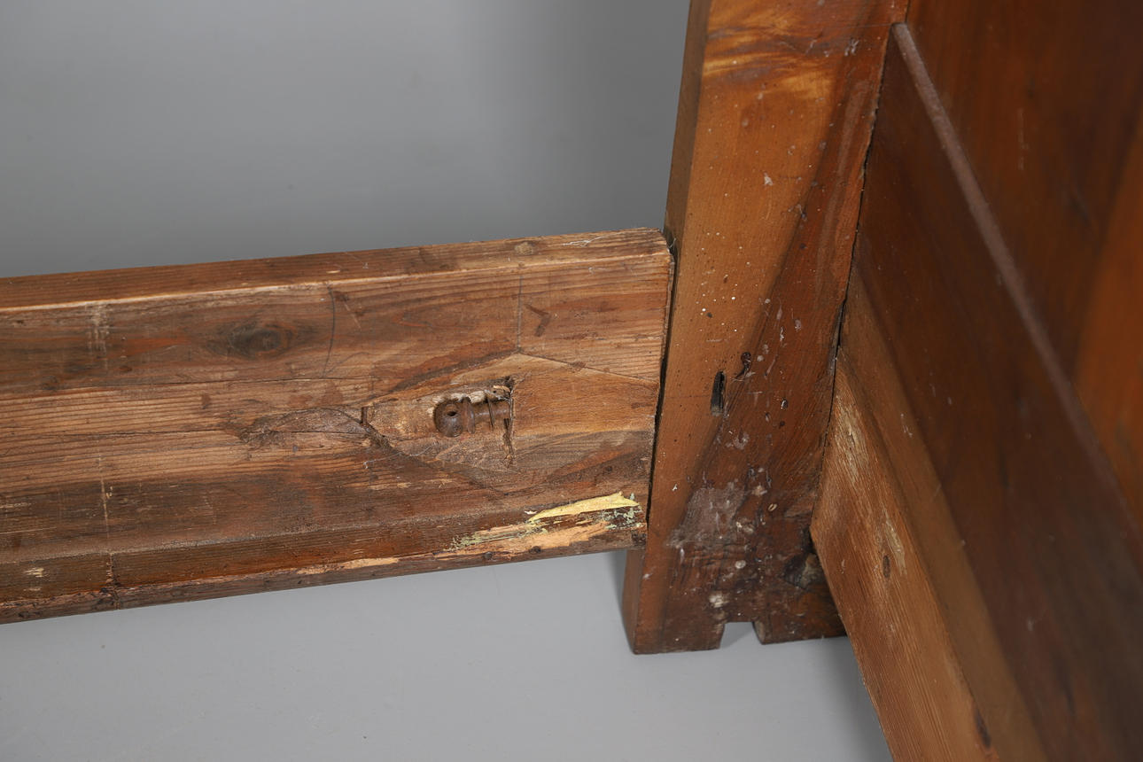 Marcas y arañazos generales. Falta una pequeña pieza en el lateral. Varias divisiones grandes en la cabecera, también varias divisiones en las otras piezas. La cama está incompleta. Ver imágenes en línea.