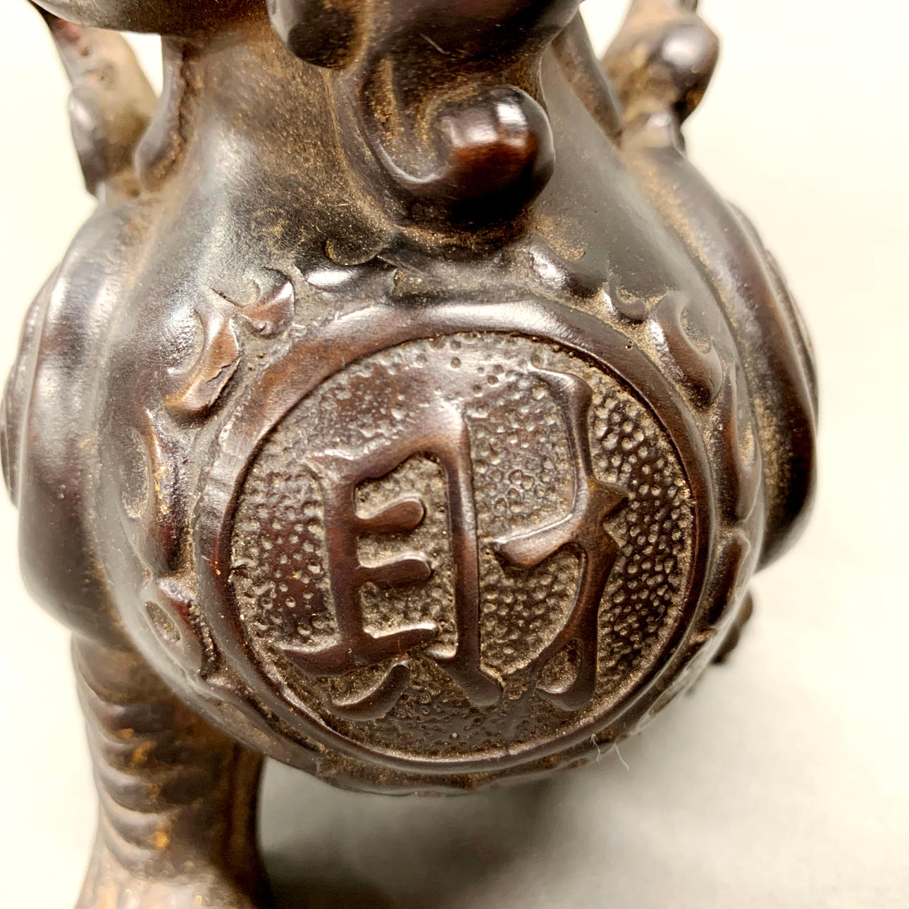 Un impresionante par de dragones chinos de bronce, 26 cm de largo y 18 cm de alto.