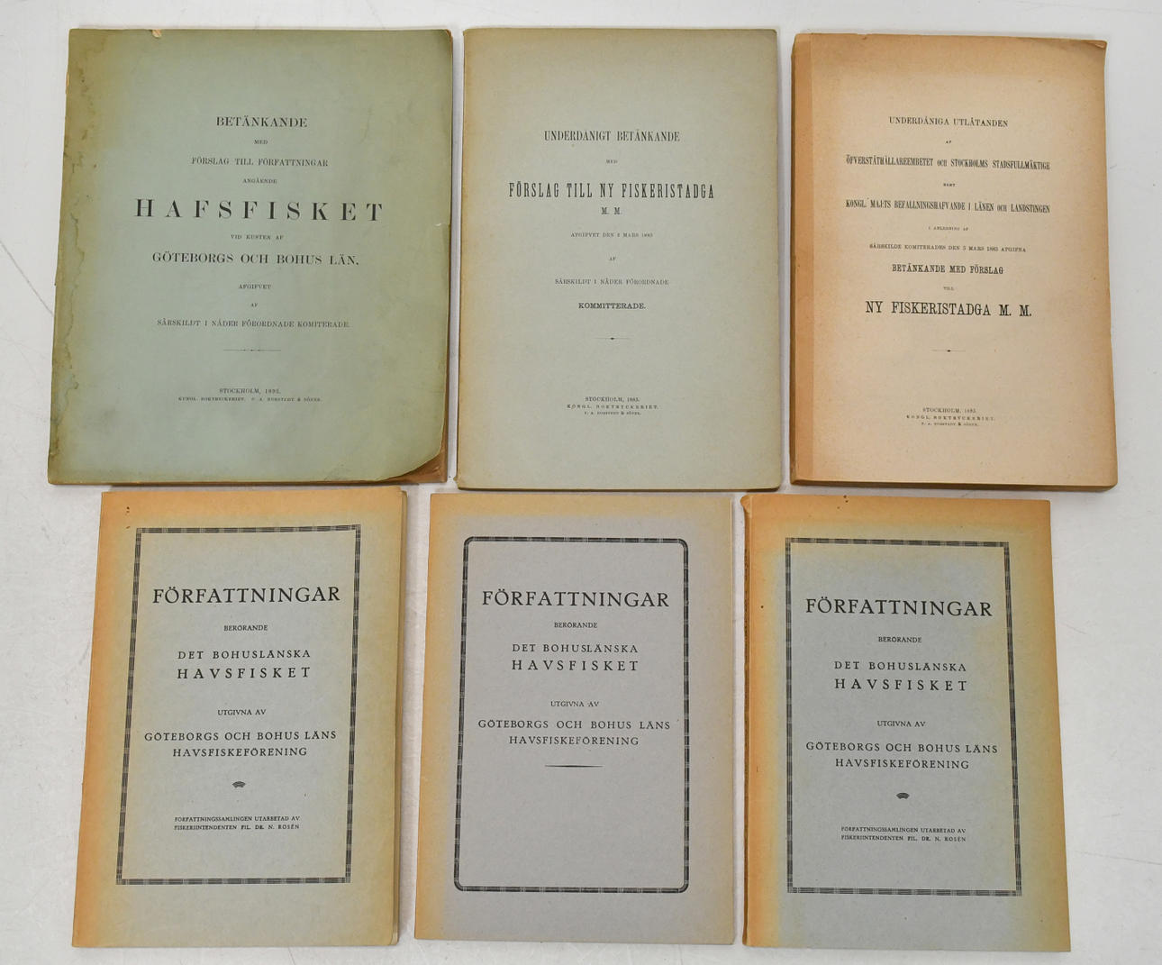 - 2 veces los estatutos sobre la pesca marítima de Bohuslän emitidos por la Asociación de Pesca Marítima de los Condados de Gotemburgo y Bohus, Dr. N. Rosen.