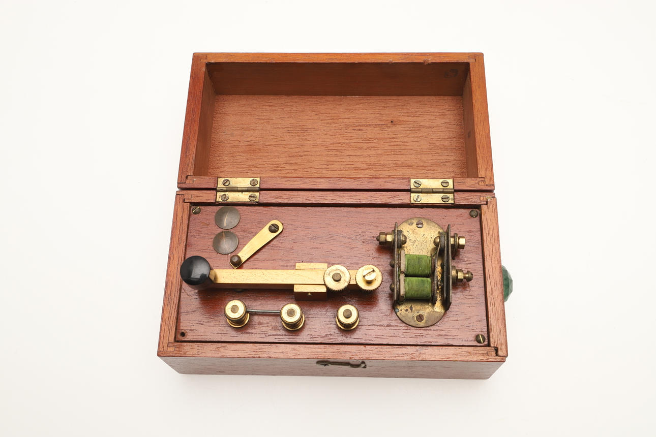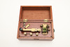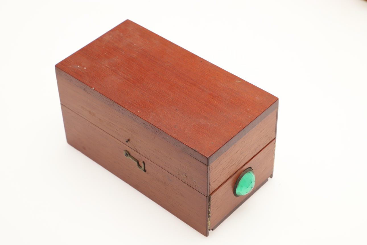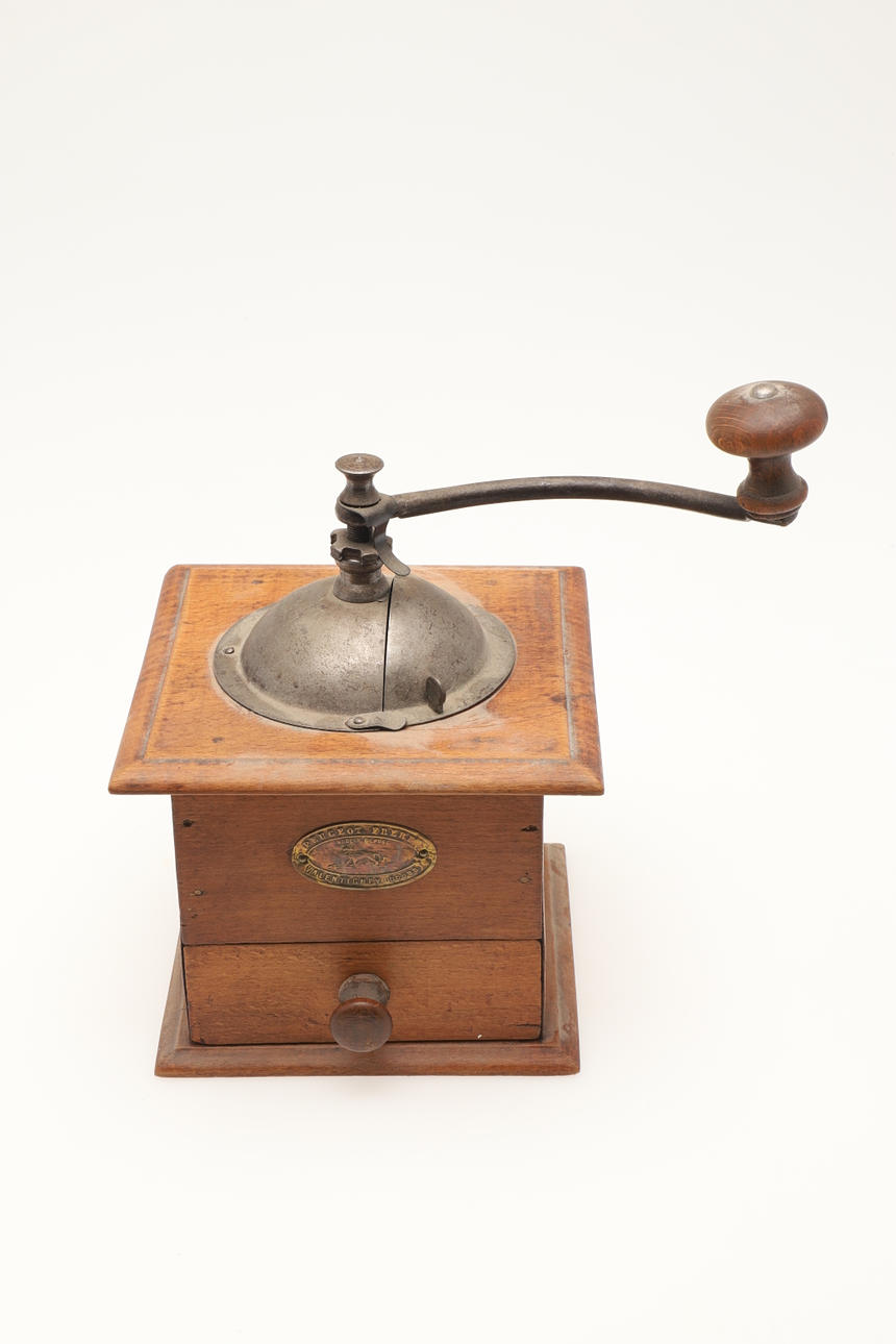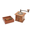 contenido en una caja de madera, junto con un molinillo de café (2).